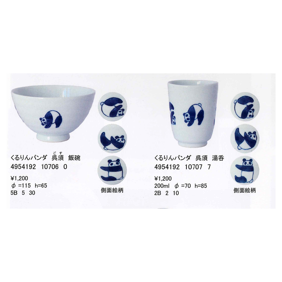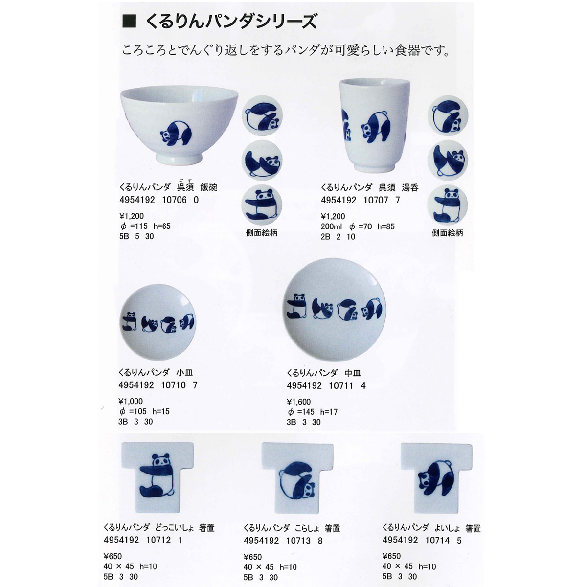 【日本製】くるりんパンダシリーズ 飯碗・湯呑・小皿・中皿・箸置