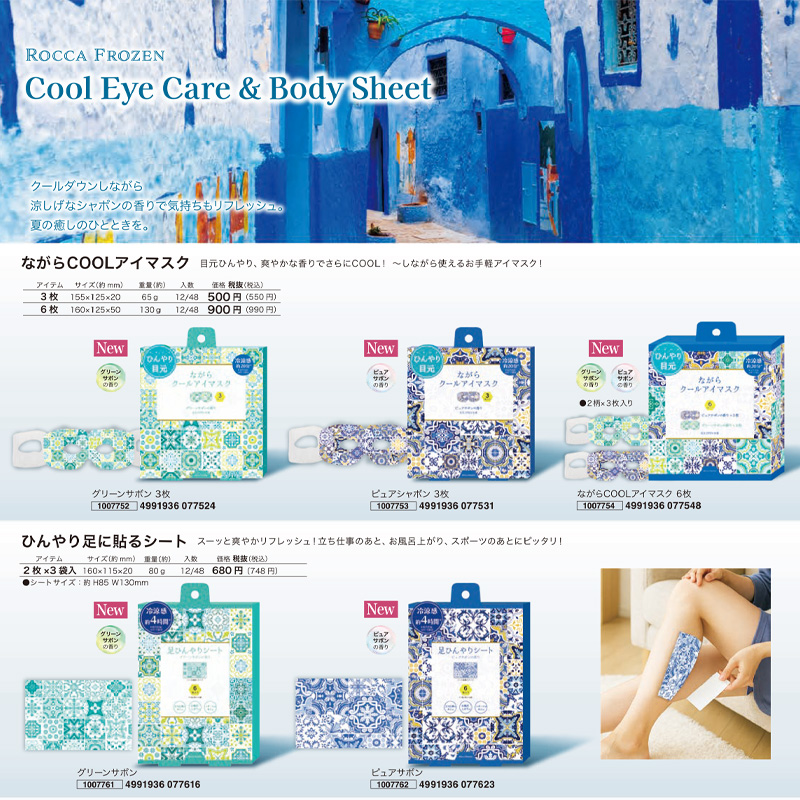 《予約:3月下旬入荷》ROCCA FROZEN Cool Eye Care&Body Sheet ながらクールアイマスク フットケア 暑さ対策 スポーツ 旅行 モロッコタイル風