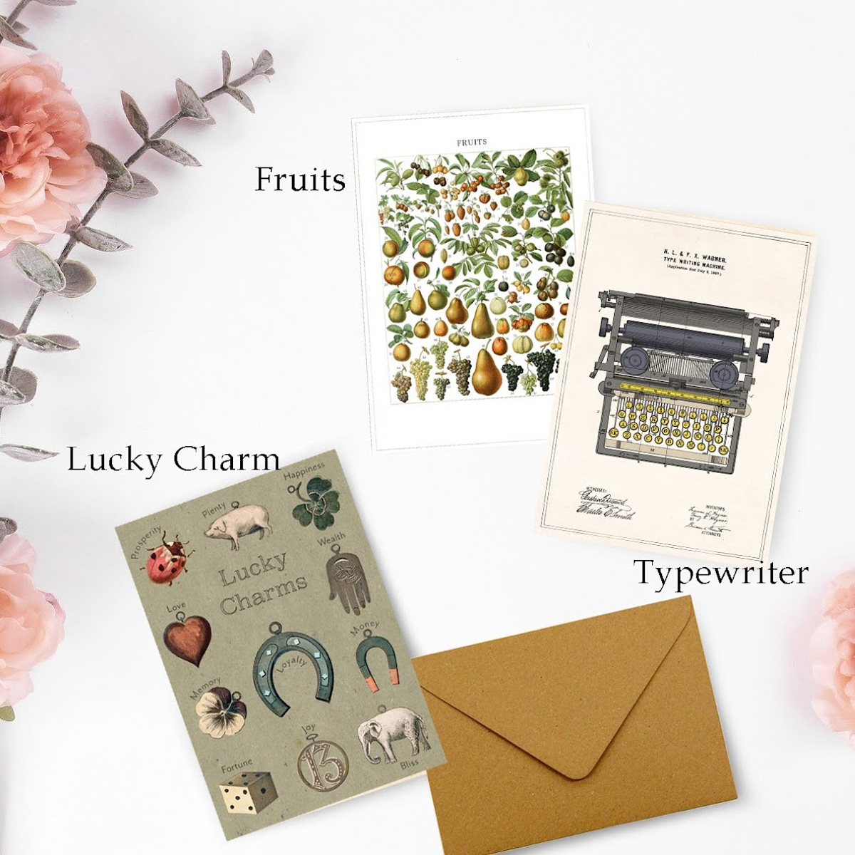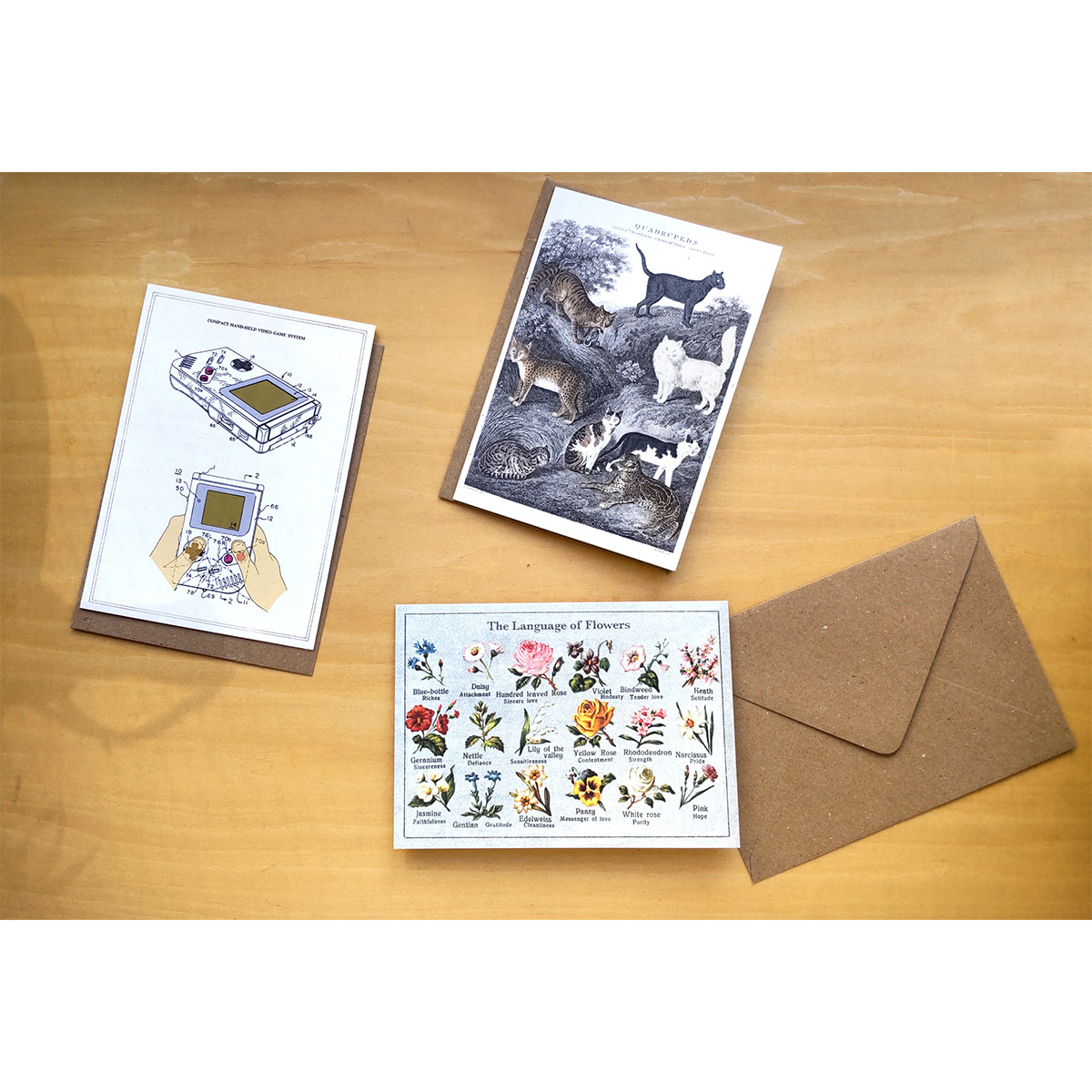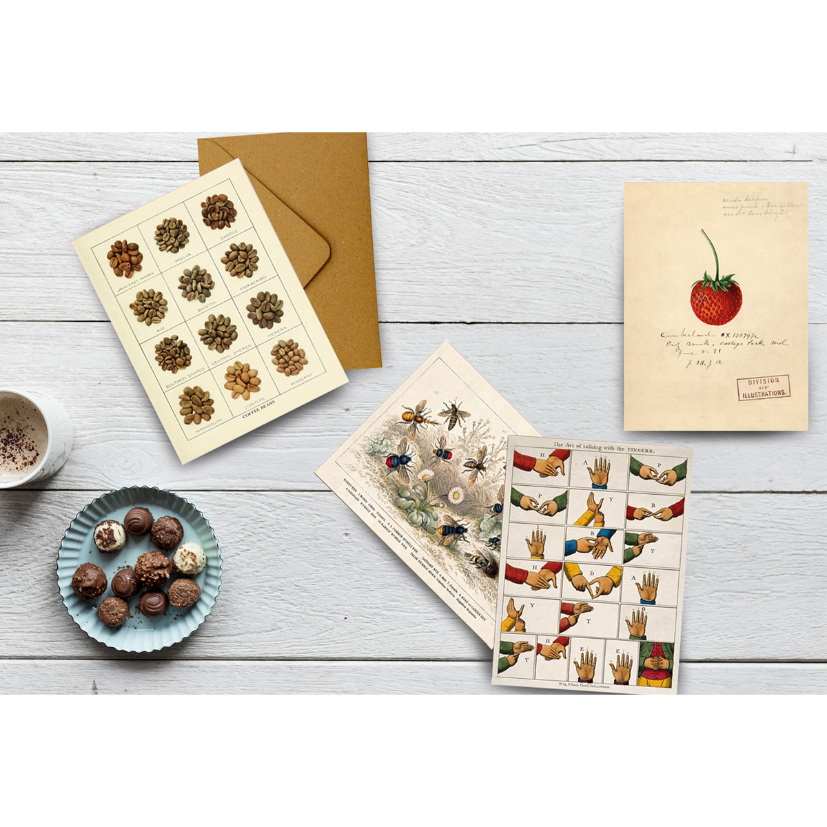 1800年代から1900年代半ばに描かれたイラスト、文献、パンフレットなどの図案をカードにしました。