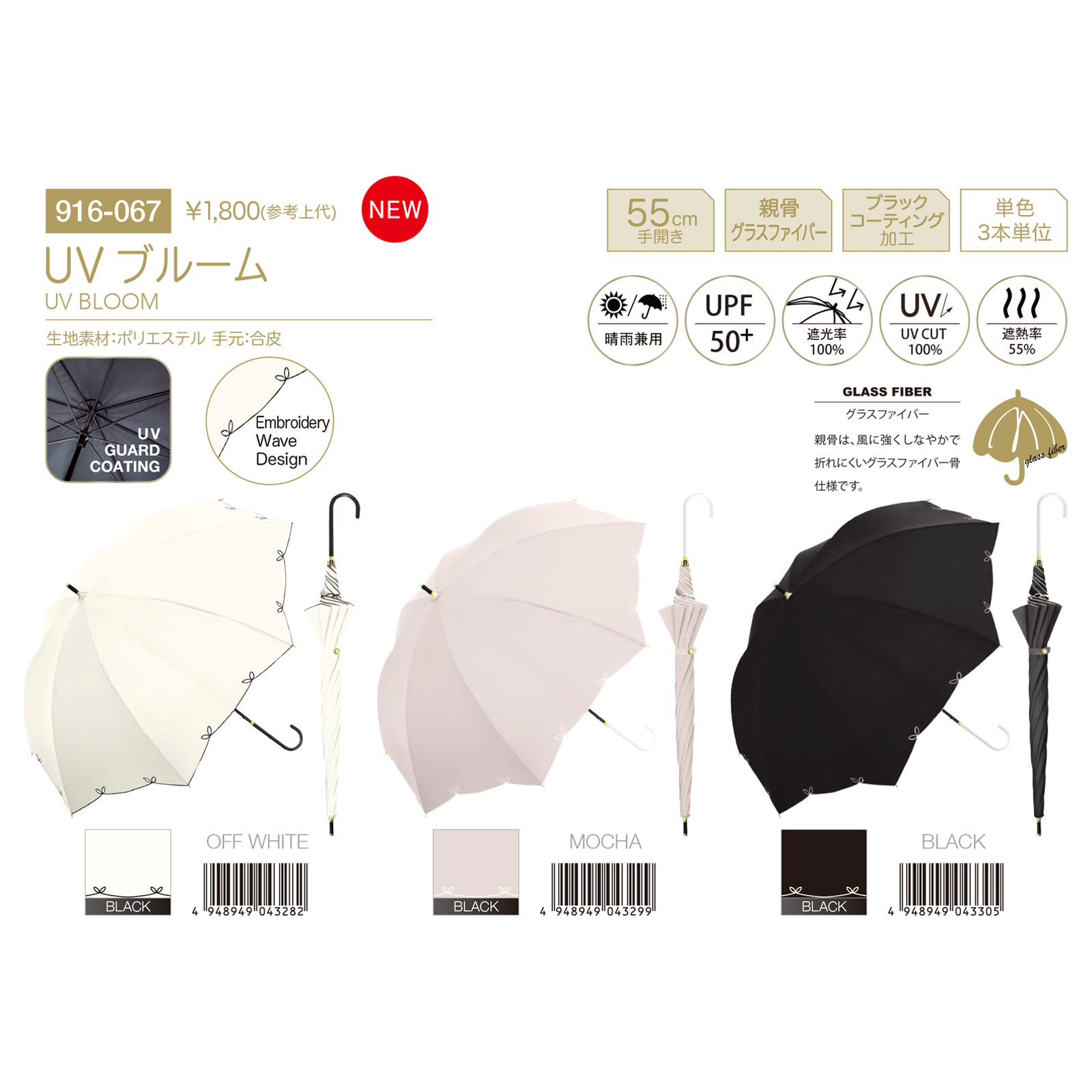 UVブルーム 55cm 長傘&折りたたみ傘 手開き 晴雨兼用 UPF50+ レディース