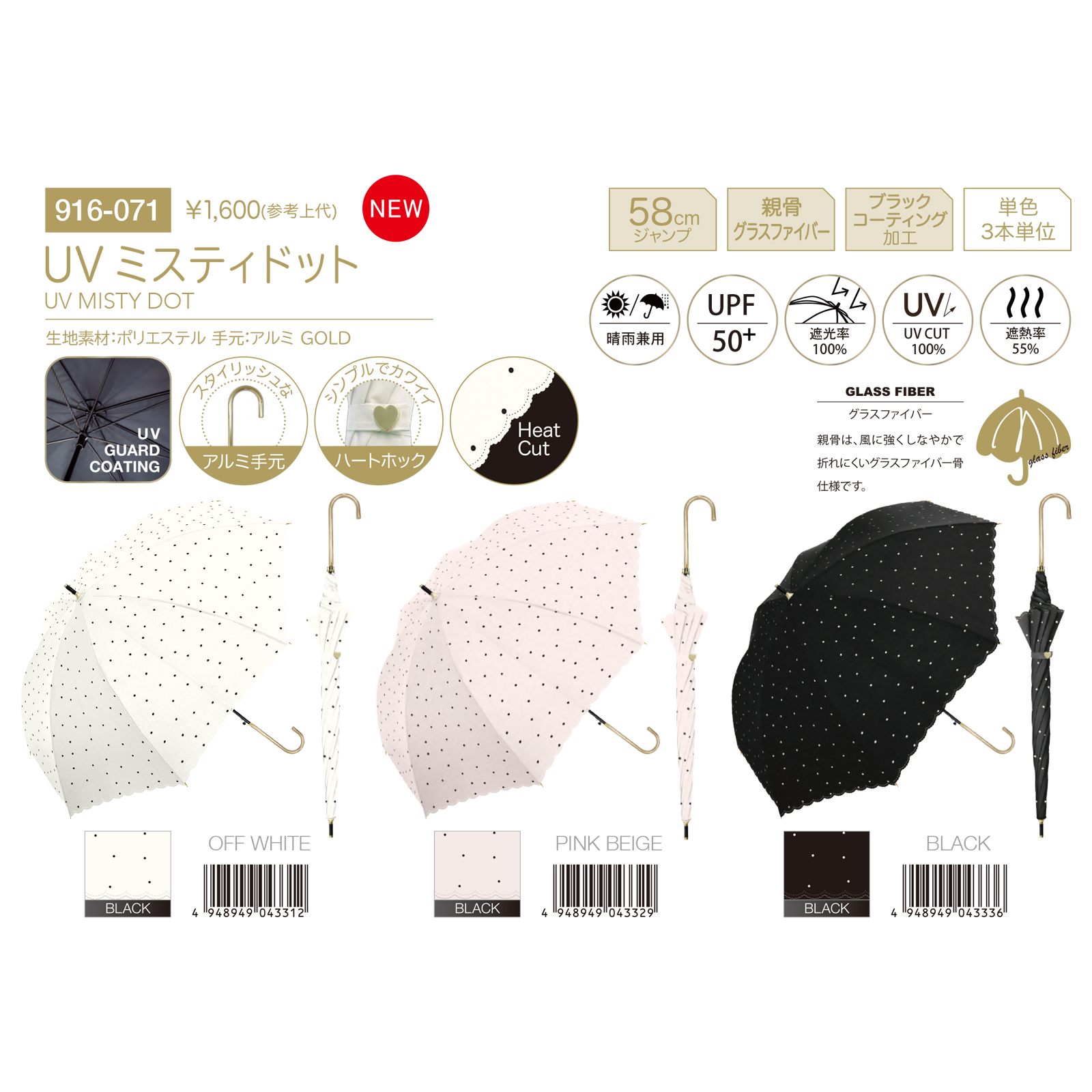 UVミスティドット 長傘58cm&折りたたみ傘55cm 晴雨兼用 遮光率100% UPF50+ レディース