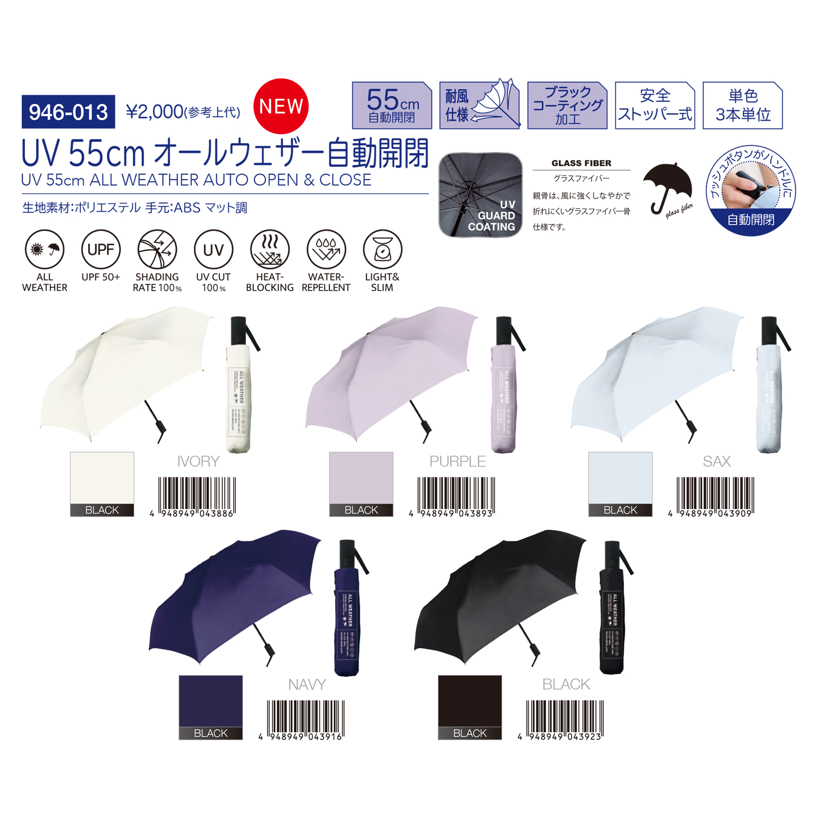 UV55cmオールウェザー自動開閉 折りたたみ傘 晴雨兼用 遮光率100% UPF50+