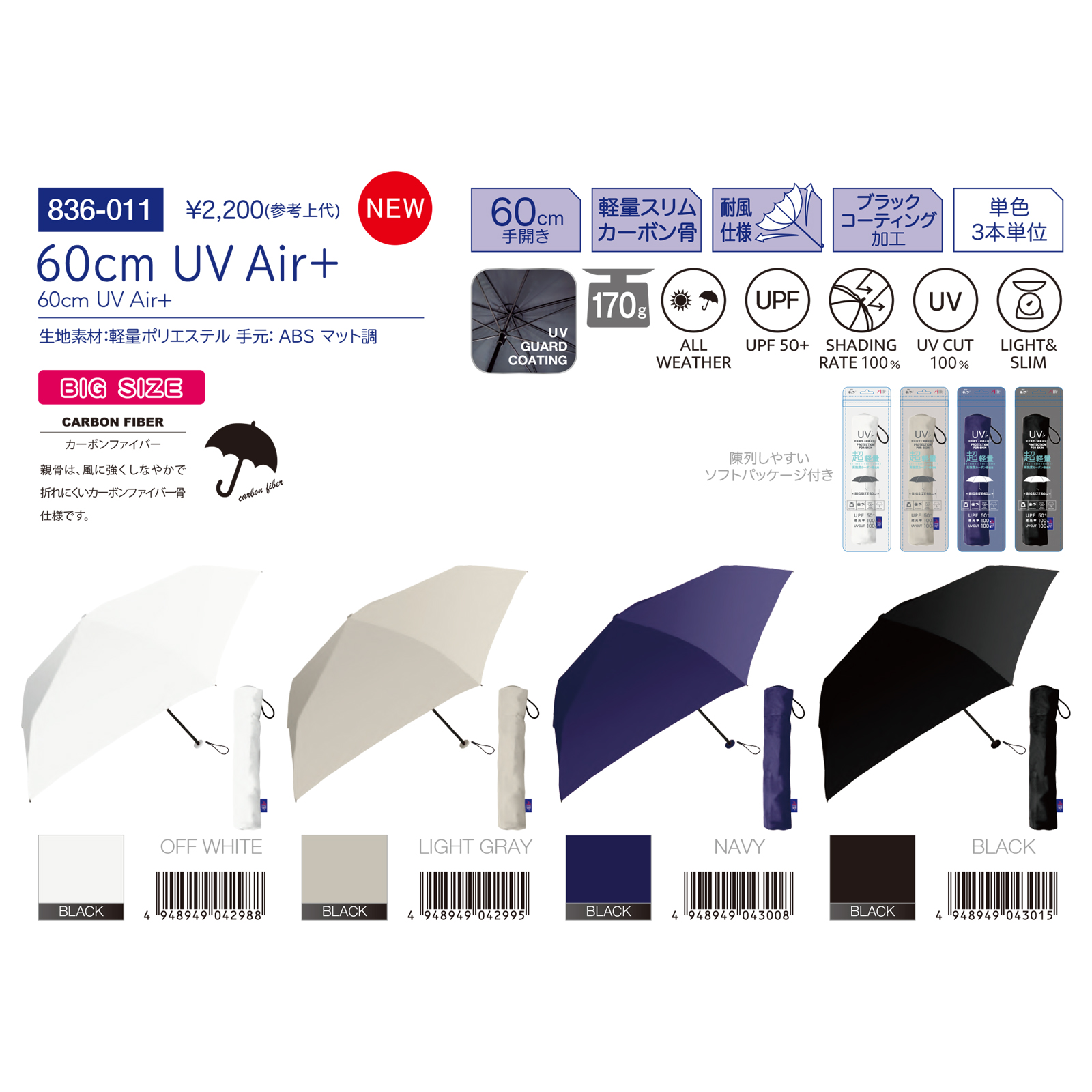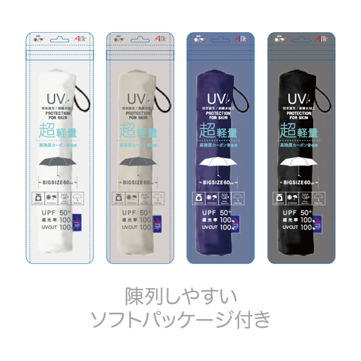 60cm UV Air+ 折りたたみ傘 軽量スリム UPF50+ レディース メンズ