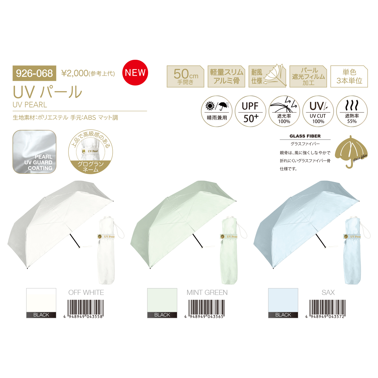 UV パール 50cm 折りたたみ傘 晴雨兼用 遮光率100% UPF50+ レディース