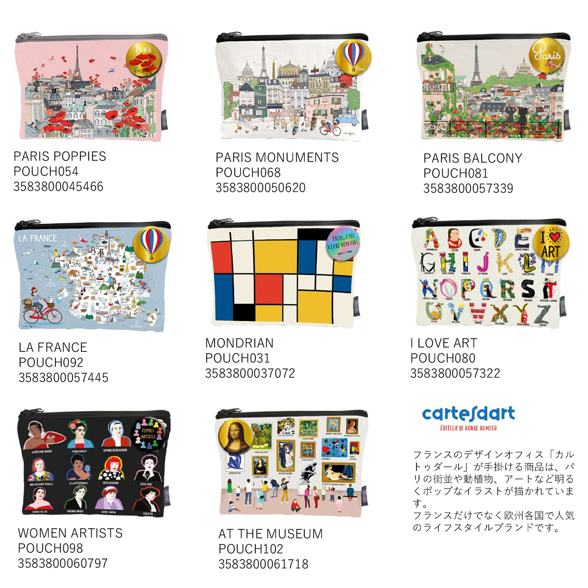 フランスのデザインオフィス「カルトゥダール」が手掛ける商品は、パリの街並みや動植物、アートなど明るくポップなイラストが描かれています。