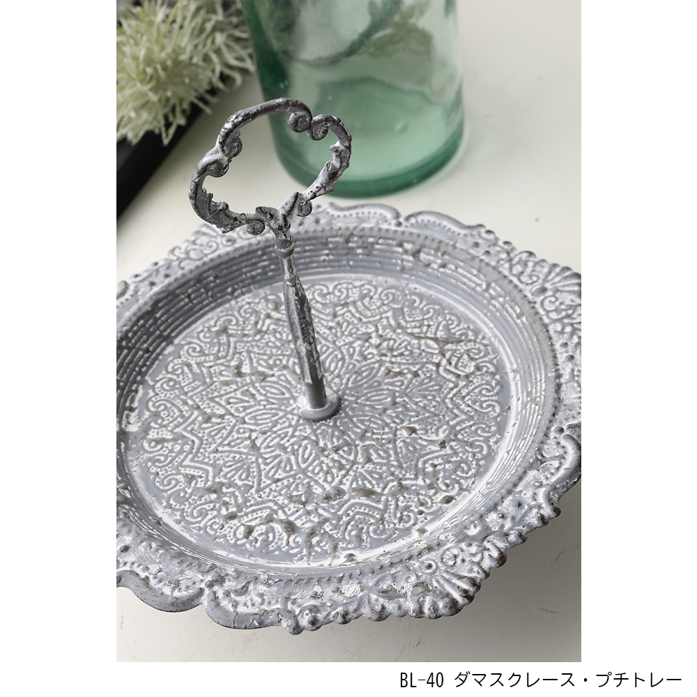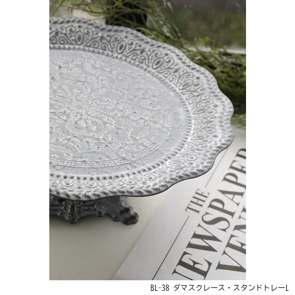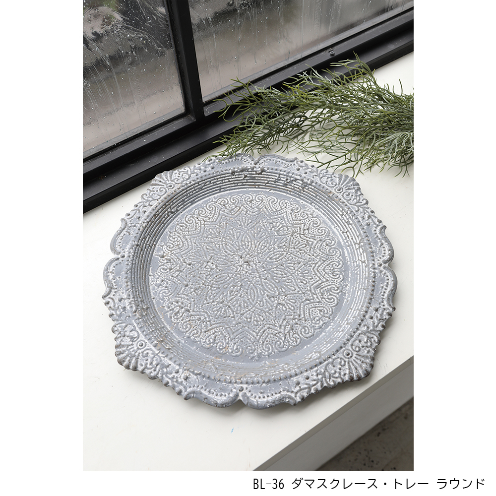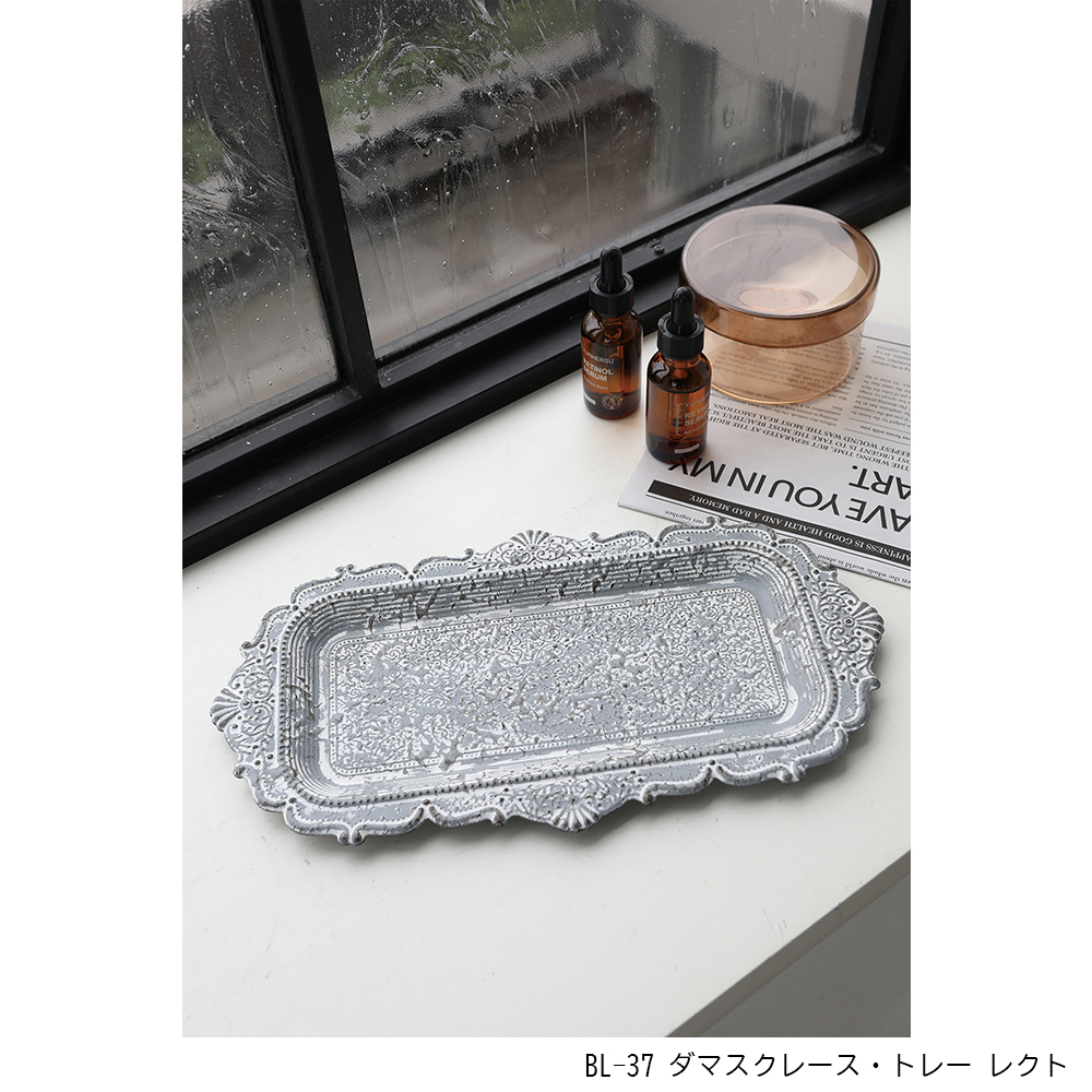 | サイズ | 【BL-36 ダマスクレース・トレー ラウンド】 サイズ:Φ31×H1.5cm 【BL-37 ダマスクレース・トレー レクト】 サイズ:W31×D16.5×H1.5cm 【BL-38 ダマスクレース・スタンドトレーL】 サイズ:Φ25×H9cm トレーサイズ:Φ18.5×H1cm 【BL-39 ダマスクレース・スタンドトレーS】 サイズ:Φ20×H7cm トレーサイズ:Φ13×H1cm 【BL-40 ダマスクレース・プチトレー】 サイズ:Φ20×H17cm トレーサイズ:Φ13×H1cm |