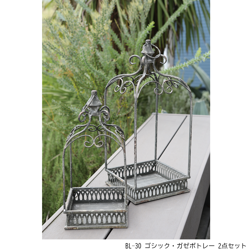 | サイズ | 【BL-11 アルジャンテ・ドームケージ 2点セット】 L.W22.5×D22.5×H44cm S.W18×D18×H38cm 口径:L.W22×D22cm S.W17.5×D17.5cm 深さ:L.24cm S.19.5cm 耐荷重:各1kg 上部が閉開します 【BL-30 ゴシック・ガゼボトレー 2点セット】 L.W20.5×D20.5×H53cm S.W17×D17×H41cm トレーサイズ:L.W18.5×D18.5×H5cm S.W15.5×D15.5×H5cm |