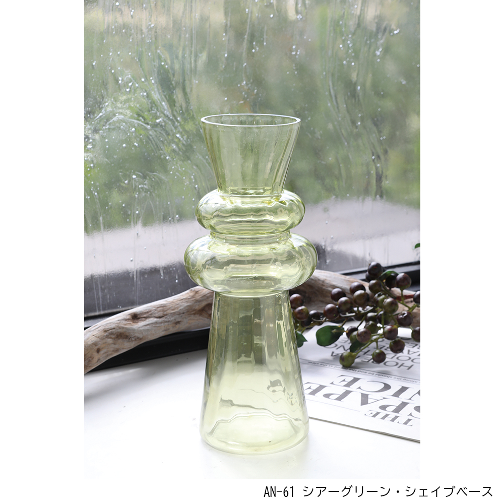 | サイズ | 【HI-24 アンブル・シリンダーベース トール】 サイズ:Φ11×H27cm 口径:Φ10.5cm 深さ:26.5cm 【HI-25 アンブル・シリンダーベース ショート】 サイズ:Φ11×H16.5cm 口径:Φ10.5cm 深さ:16cm 【HE-30 クラウン・ガラスベース】 サイズ:Φ10×H21.5cm 口径:Φ4cm 深さ:21cm 【AN-61 シアーグリーン・シェイプベース】 サイズ:Φ8.5×H21cm 口径:Φ6cm 深さ:20.5cm |