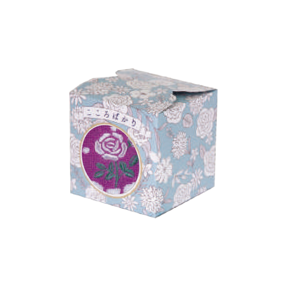 ブーケの刺繍入りタオルハンカチをかわいい花柄のキューブボックスに閉じ込めました。