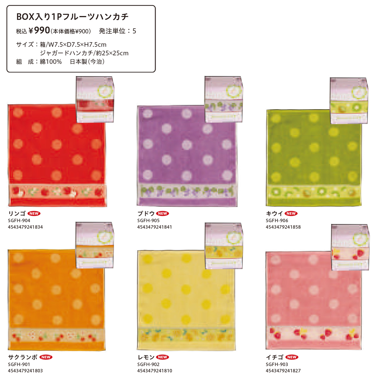 【日本製】Greeting gift BOX入り1Pフルーツハンカチ 今治