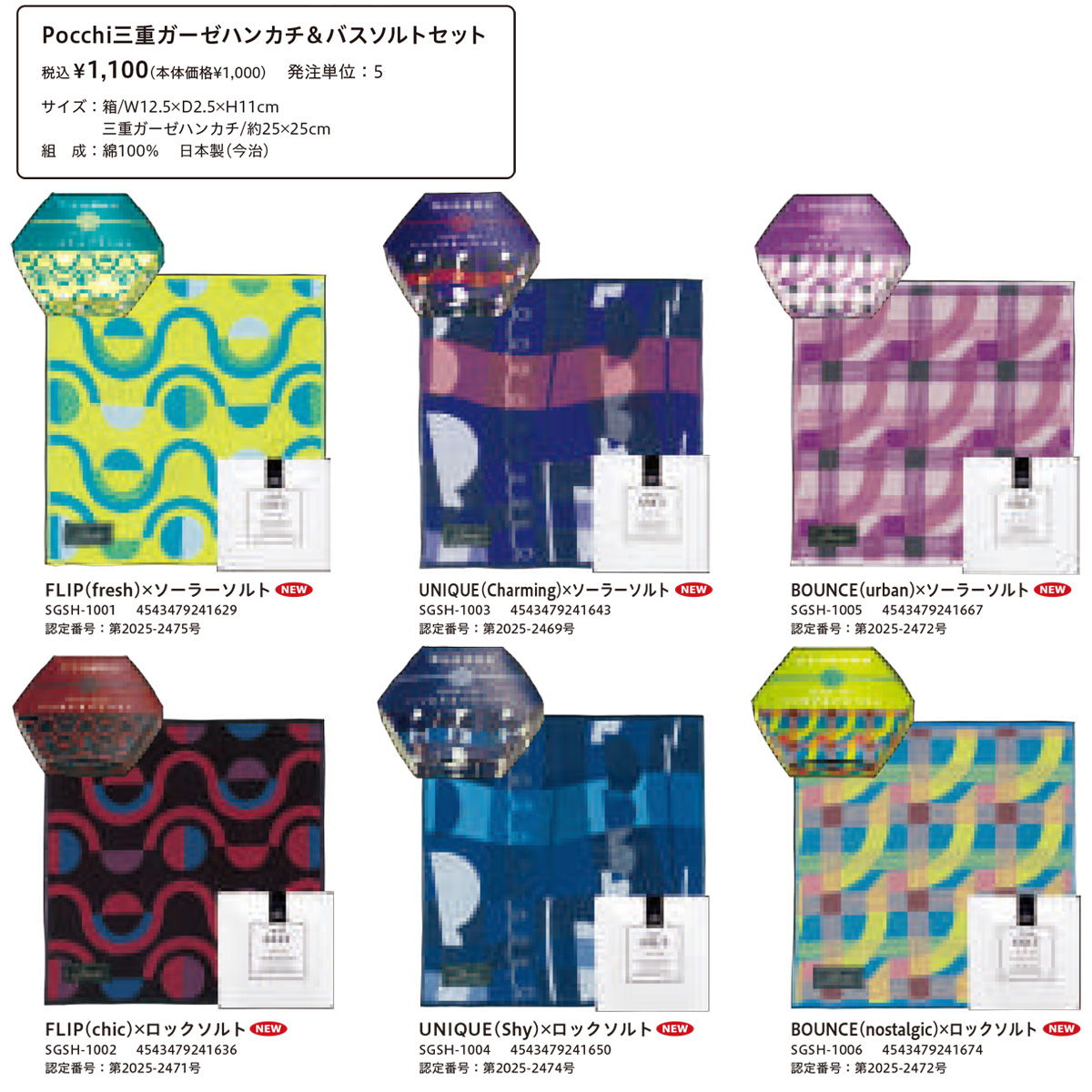 【日本製】Pocchi三重ガーゼハンカチ&バスソルトセット