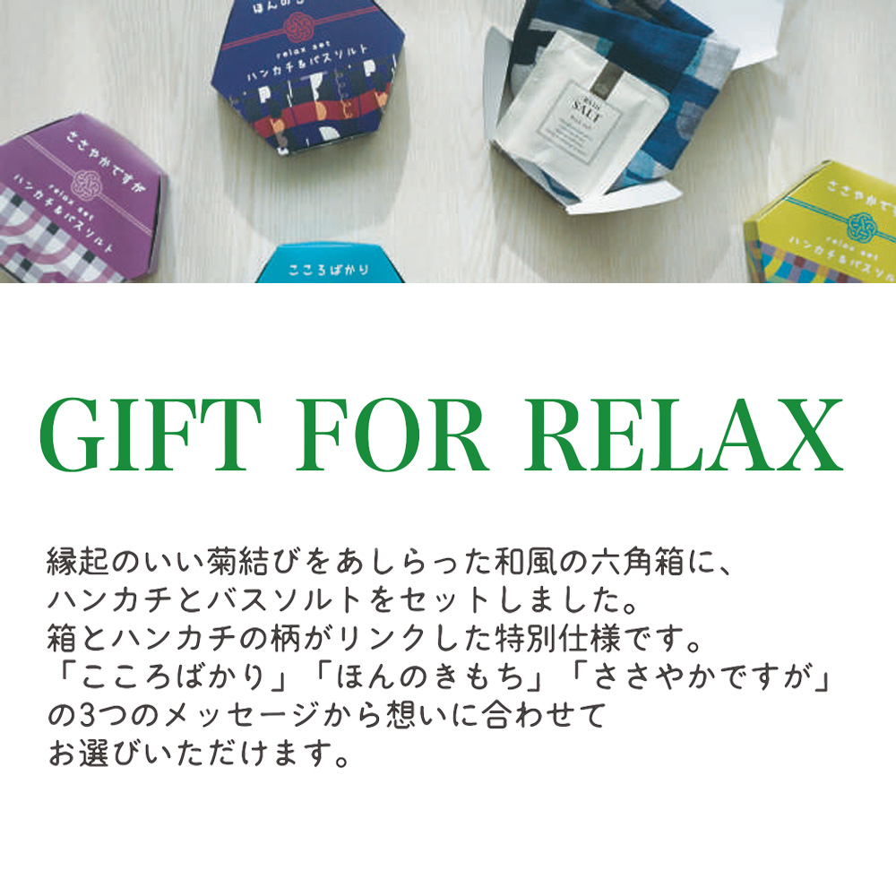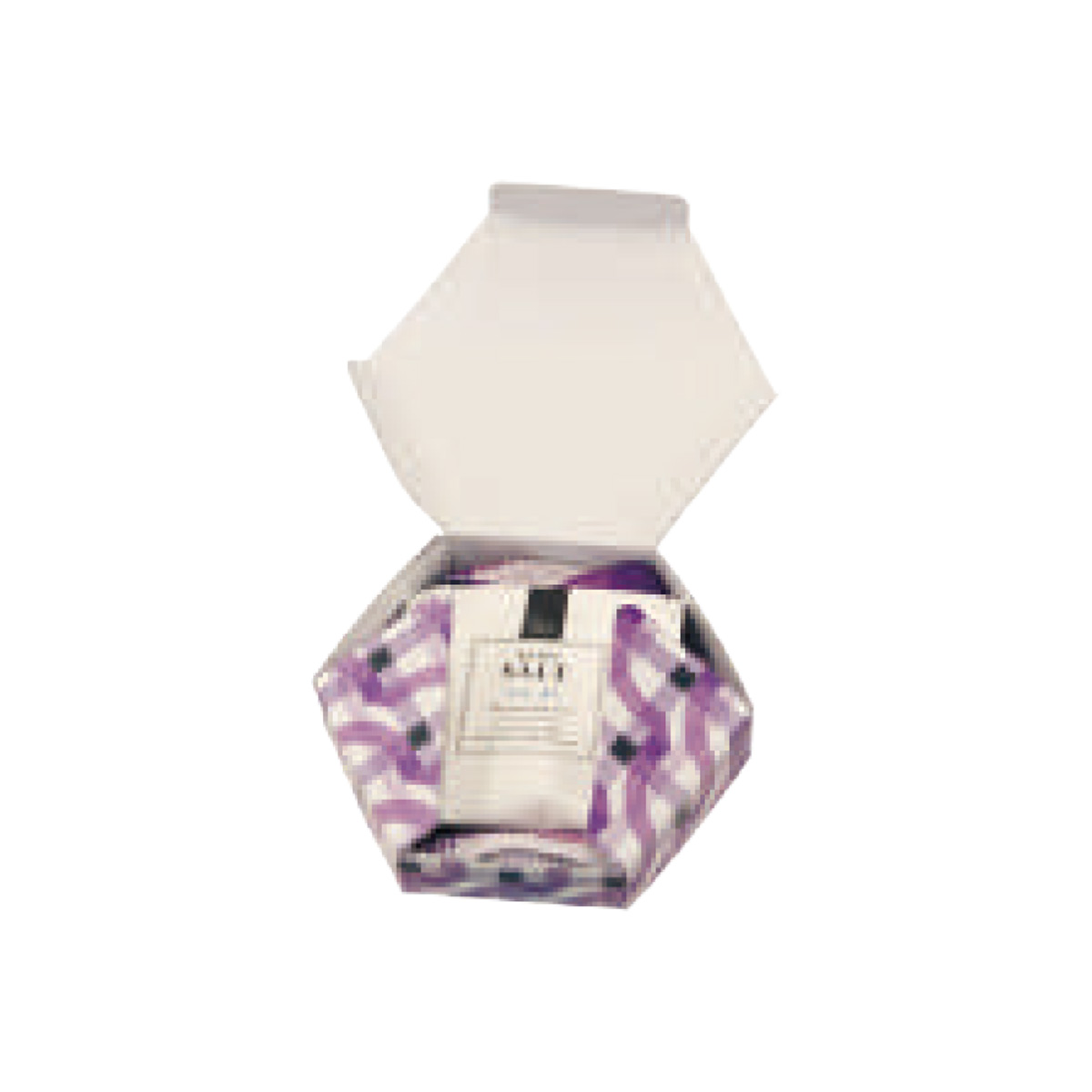 縁起のいい菊結びをあしらった和風の六角箱に、ハンカチとバスソルトをセットしました。