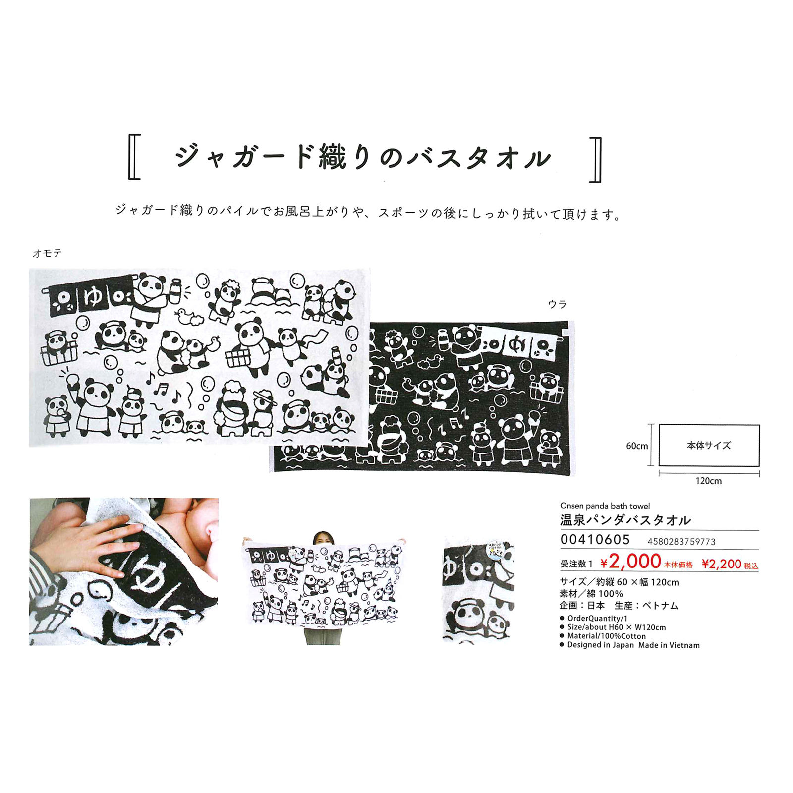 ジャガード織りバスタオル 温泉パンダ