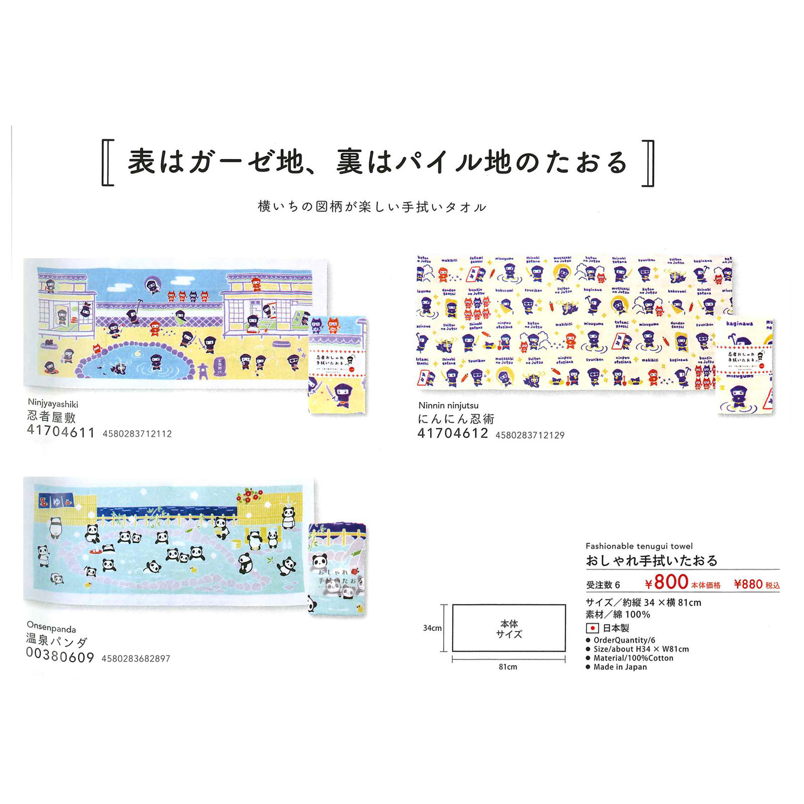 【日本製】おしゃれ手拭いたおる てぬぐい 忍者 温泉パンダ