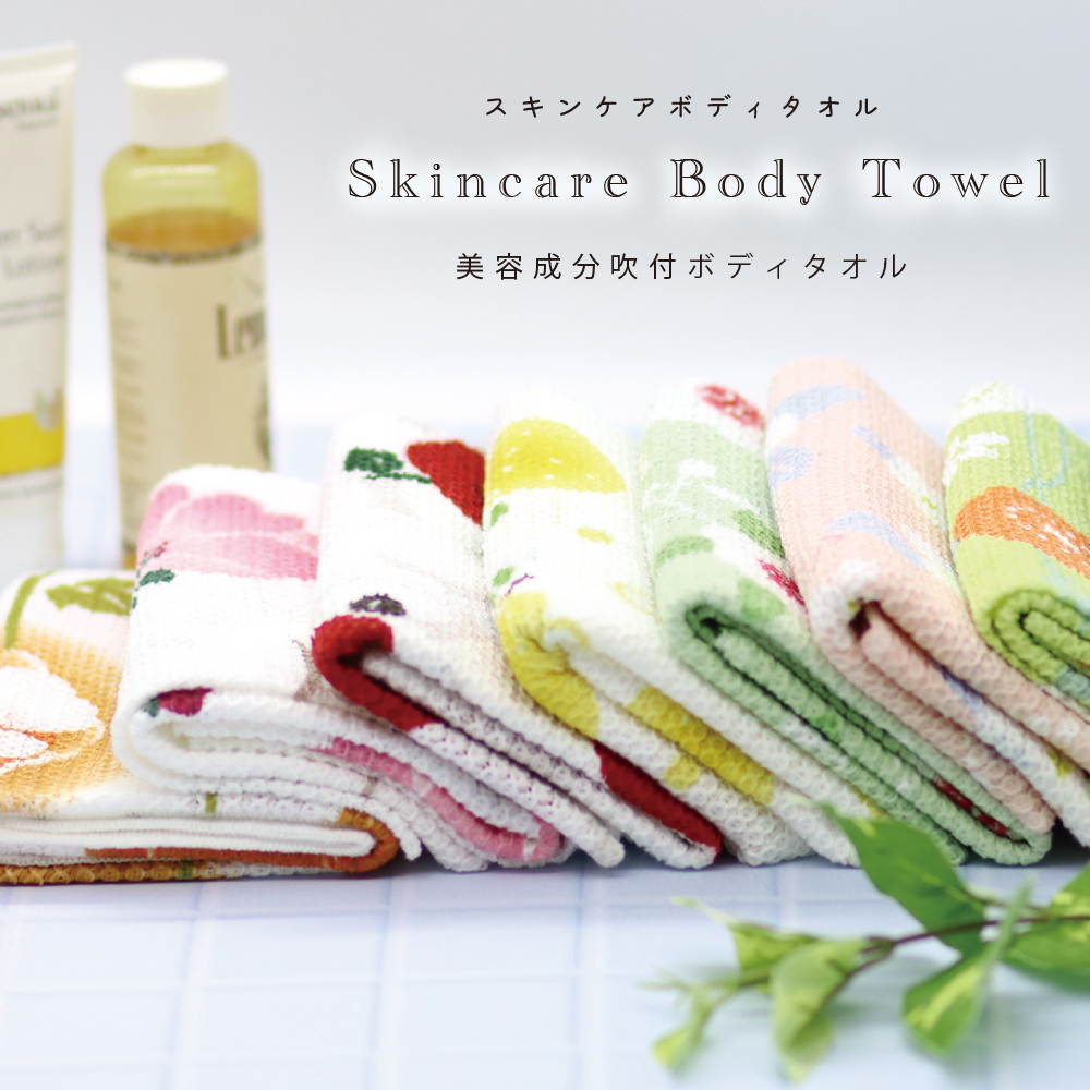毎日のバスタイムに使える「ながらスキンケア」美容成分のエキス配合のボディタオルで自分磨き。