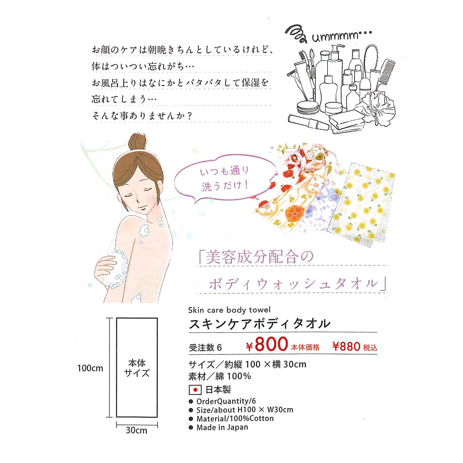 お風呂上りはなにかとバタバタして保湿を忘れてしまう…そんな方におすすめの美容成分配合のボディウォッシュタオルです。