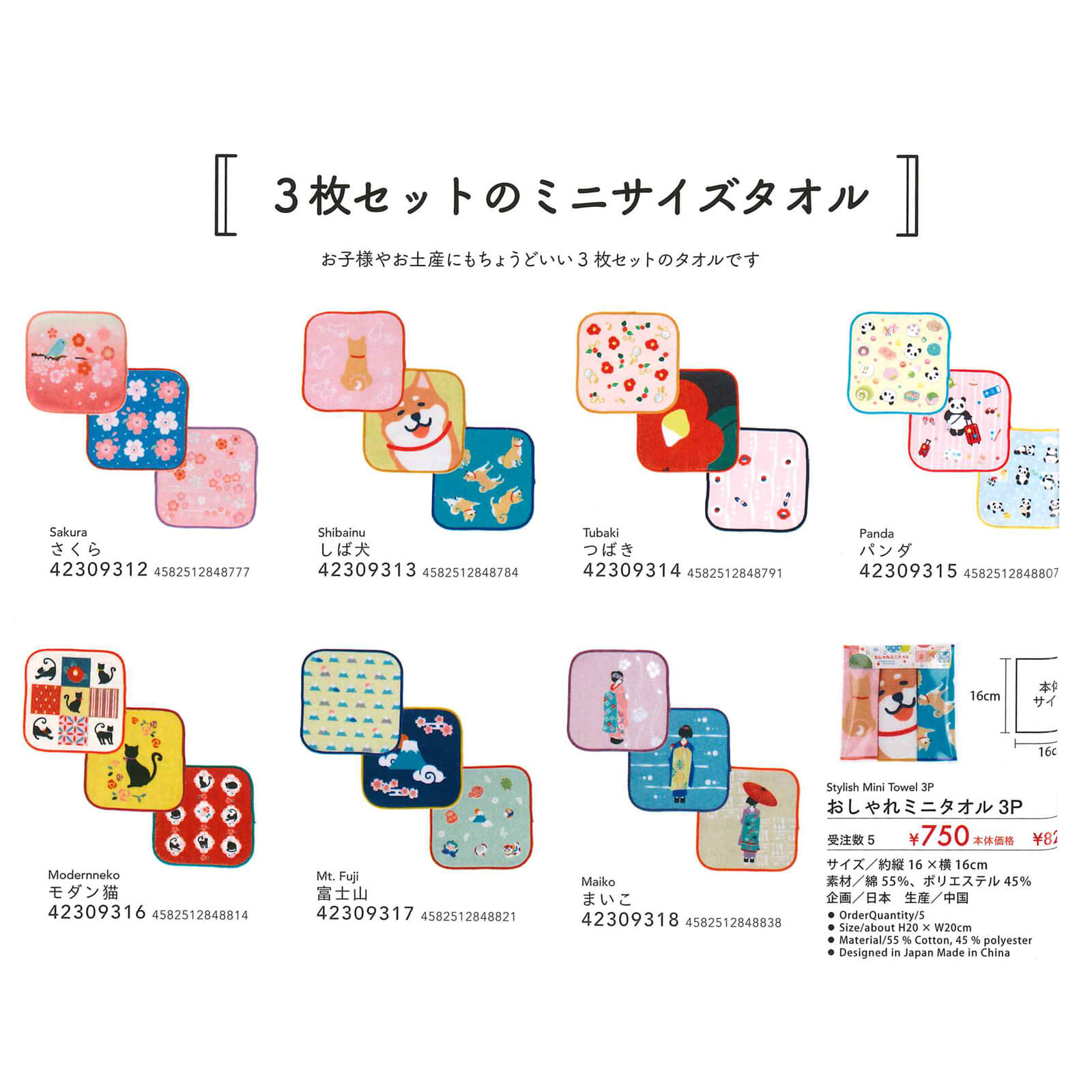 おしゃれミニタオル3P まいこ