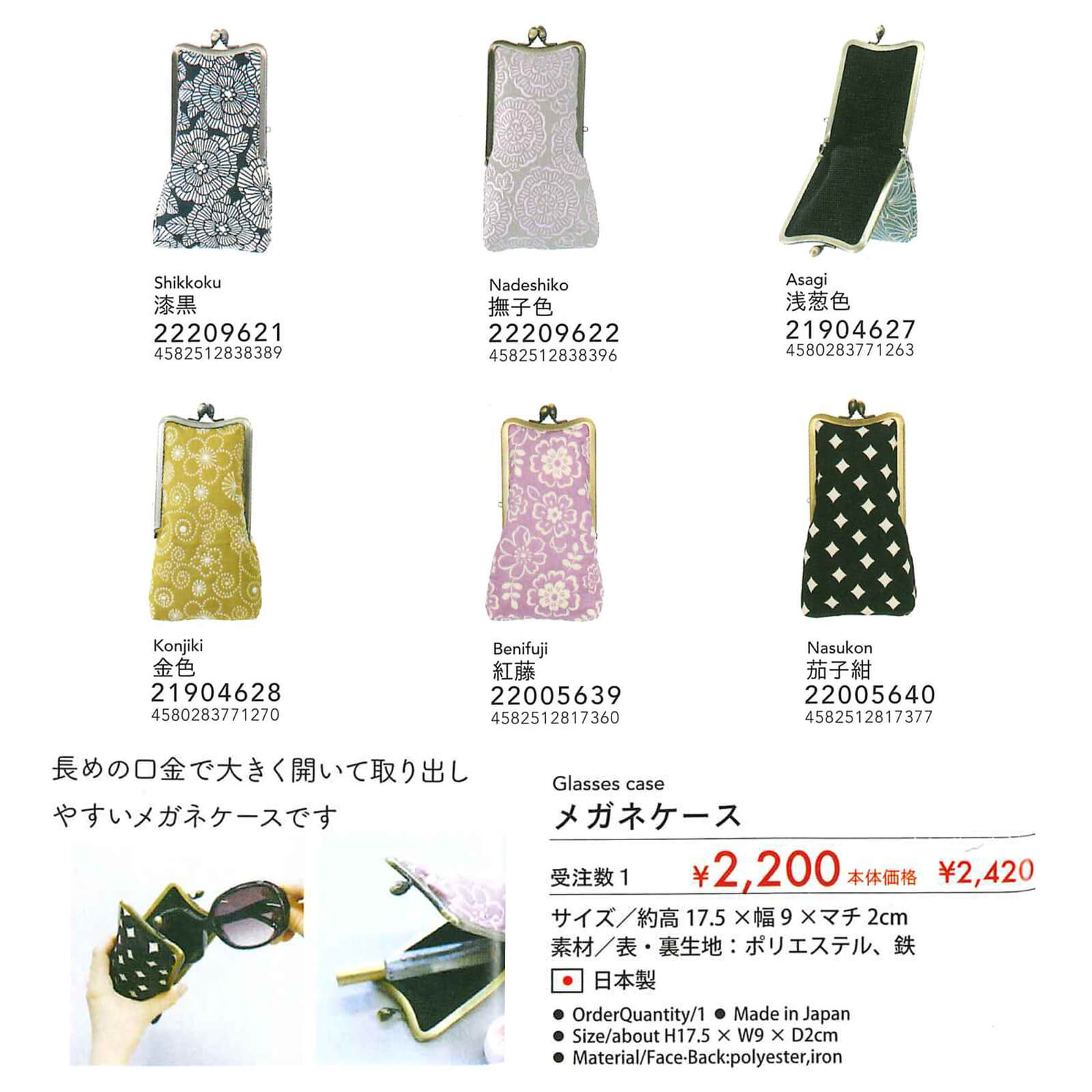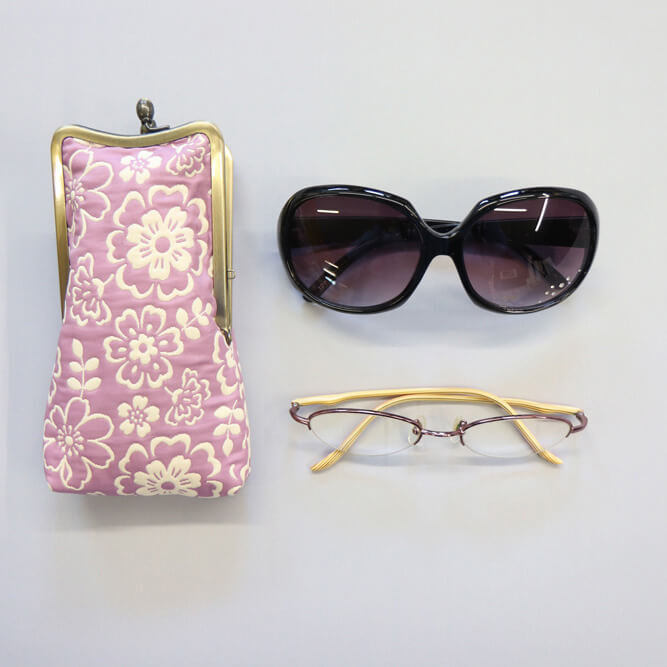 長めの口金で大きく開いて取り出しやすいメガネケースです