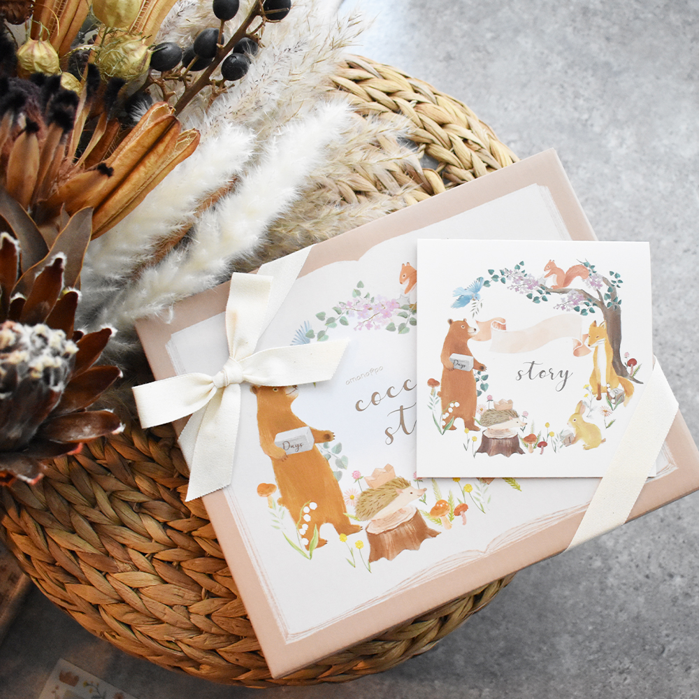 幸せを運ぶ青い鳥と言われるルリビタキや、思い出・幸福・希望などの花言葉を持つ植物をあしらい、物語の始まりのようなパッケージに仕上げました。
