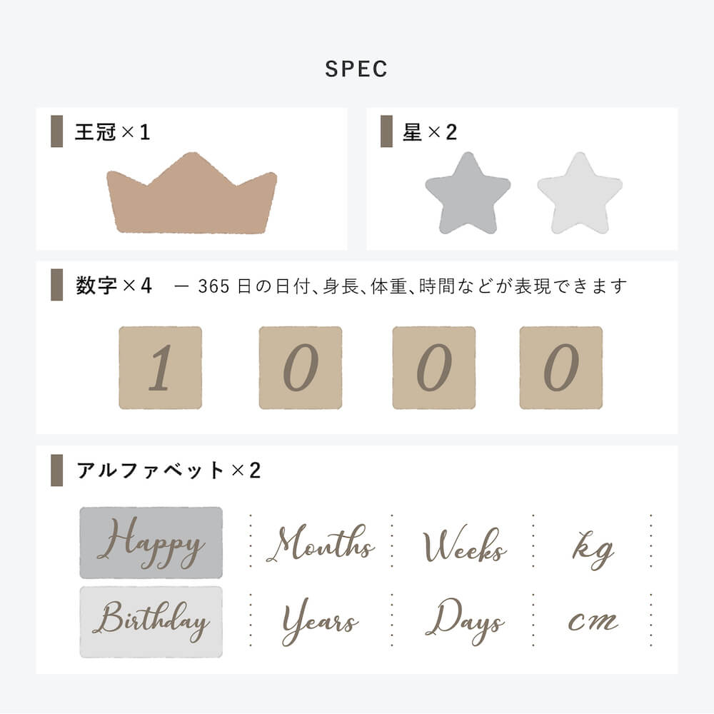毎日の成長記録やちょっとした記念日に写真を撮ったり、数字の勉強をしたり、その後もカレンダーとしてなど様々な使い方ができるよう工夫しました。