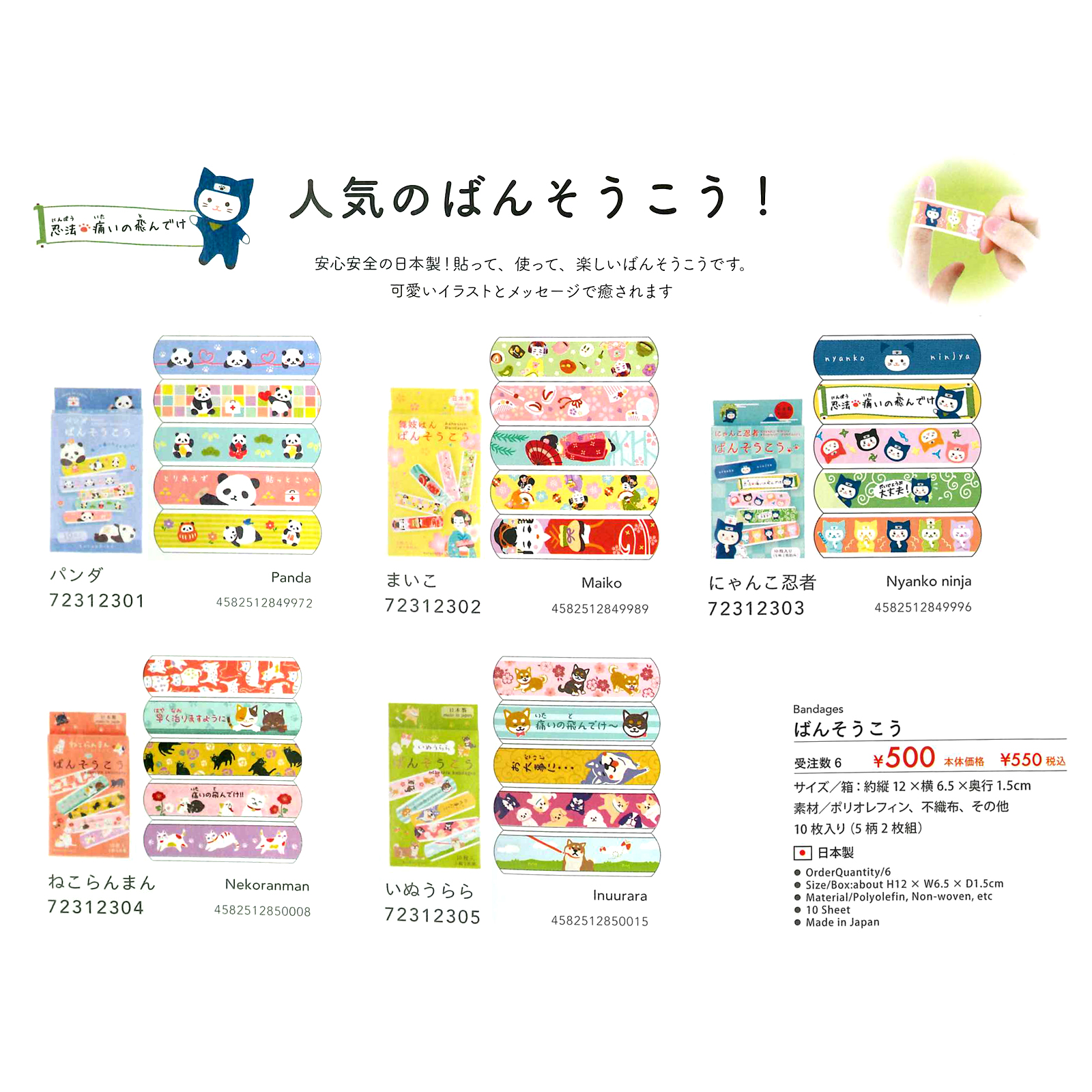 安心安全の日本製!貼って、使って、楽しいばんそうこうです。