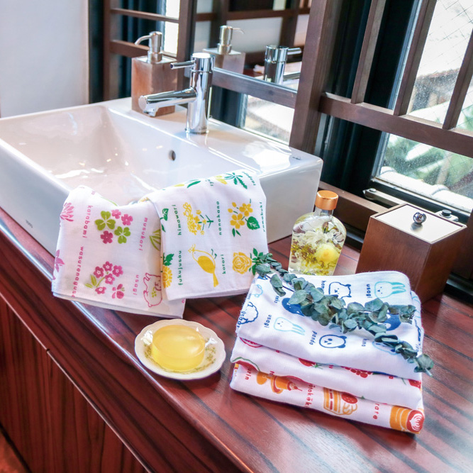 表はガーゼ地、裏はパイル地の二重仕立てで肌触り抜群の手拭いタオル。