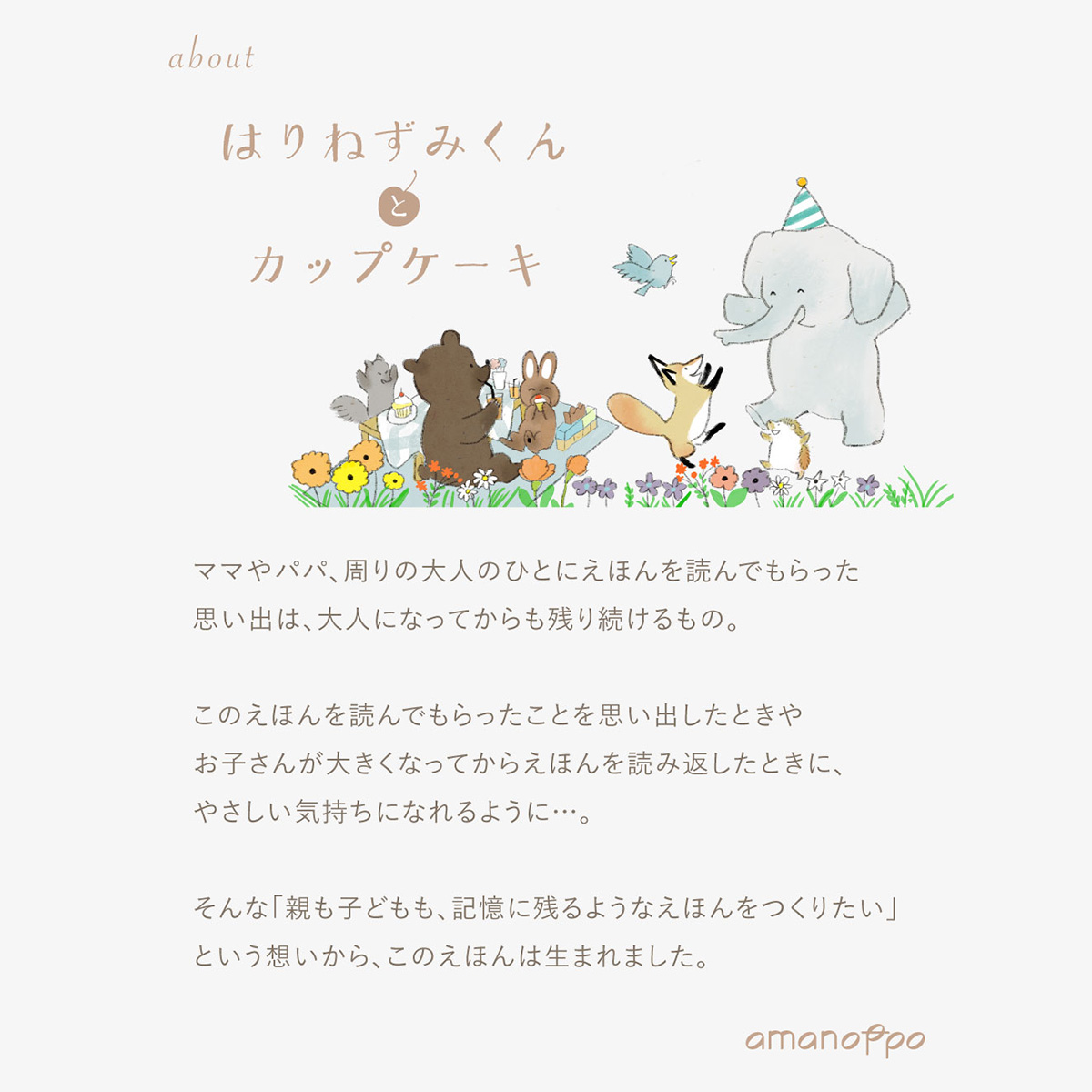 はりねずみくんは森のおともだちといっしょにぞうさんが大好きなカップケーキを作ります。