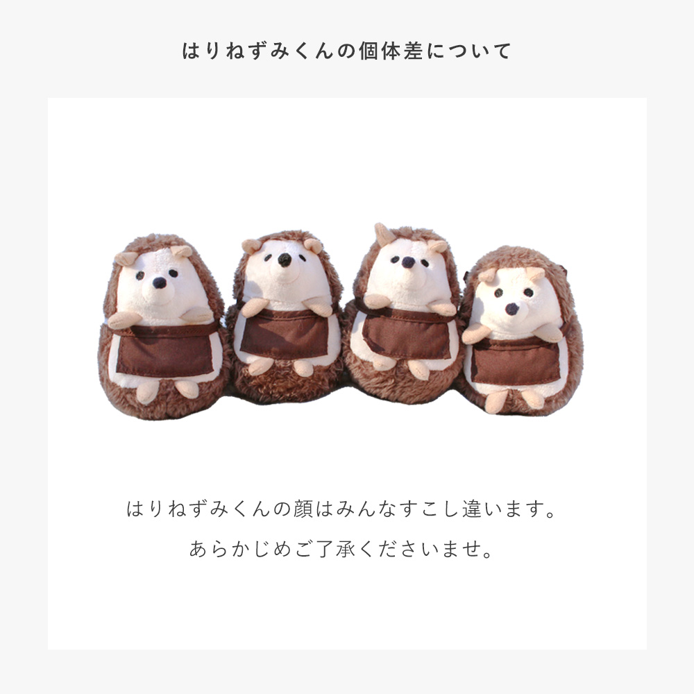 はりねずみくんのぬいぐるみは大人の手のひらサイズだから、ちいさなお子さまのはじめてのおともだちにも。