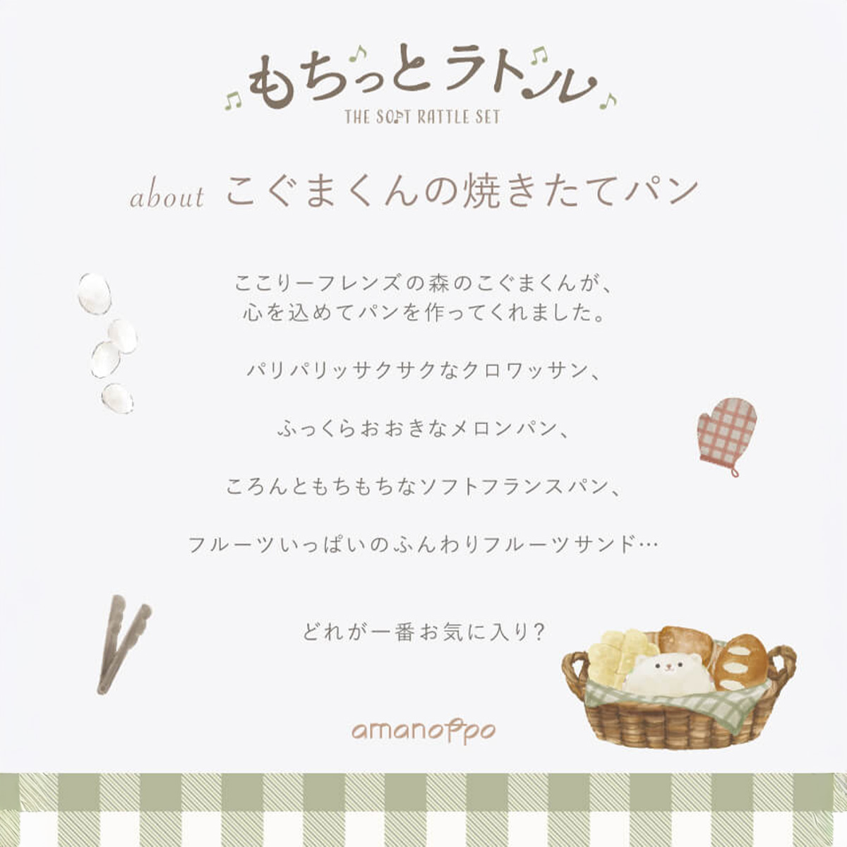 もちっと手触り、まるで本物のパンみたいな布ラトルセット