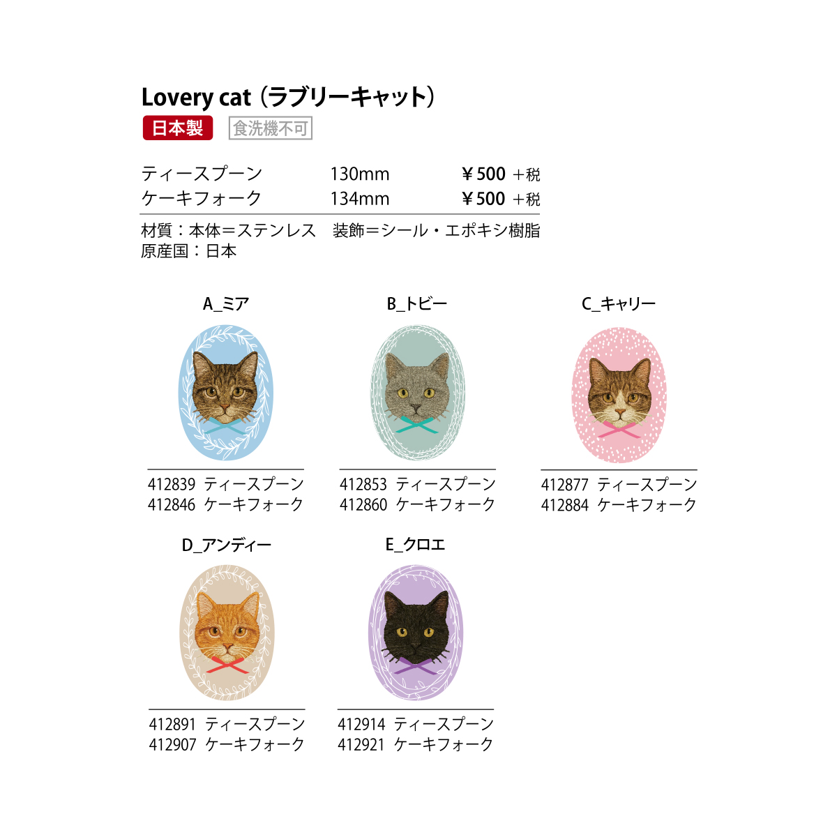 《予約:3月末入荷》【Lovery cat】フレーム デザインカトラリー ティースプーン/ケーキフォーク 猫 日本製