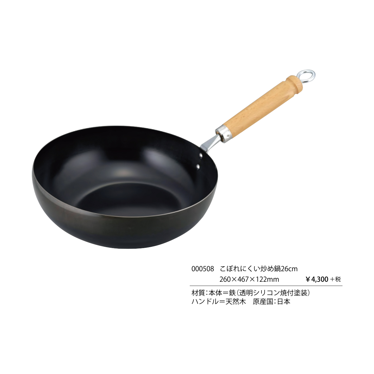 | 素材 | 本体:鉄(透明シリコン焼付塗装) ハンドル:天然木 |