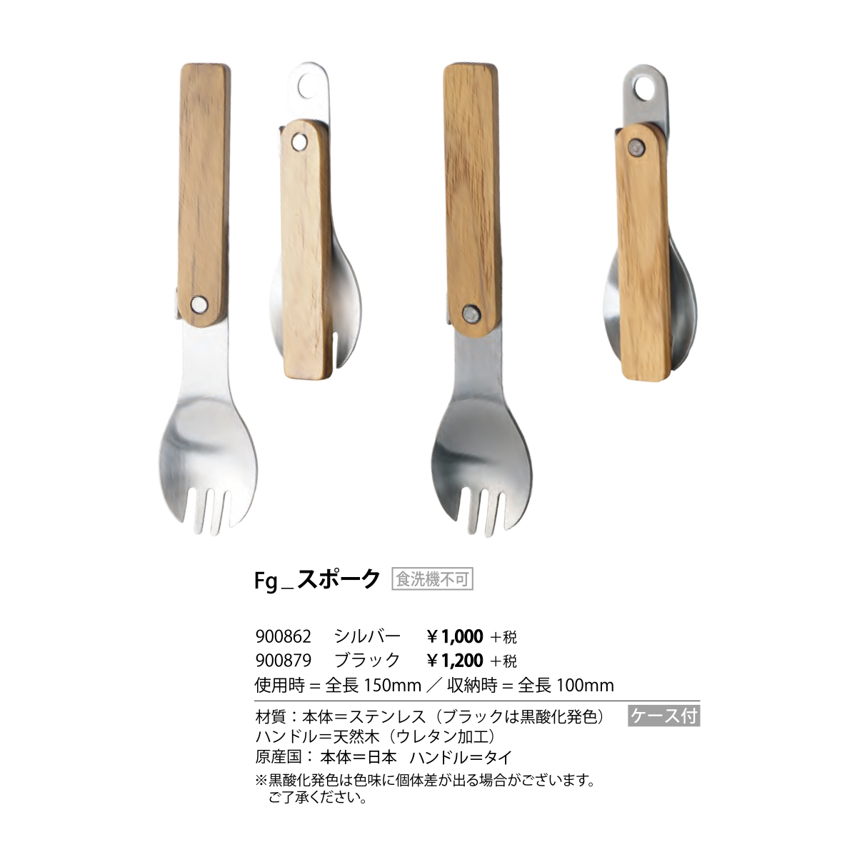 | 素材 | 本体:ステンレス(ブラックは黒酸化発色) ハンドル:天然木(ウレタン加工) |