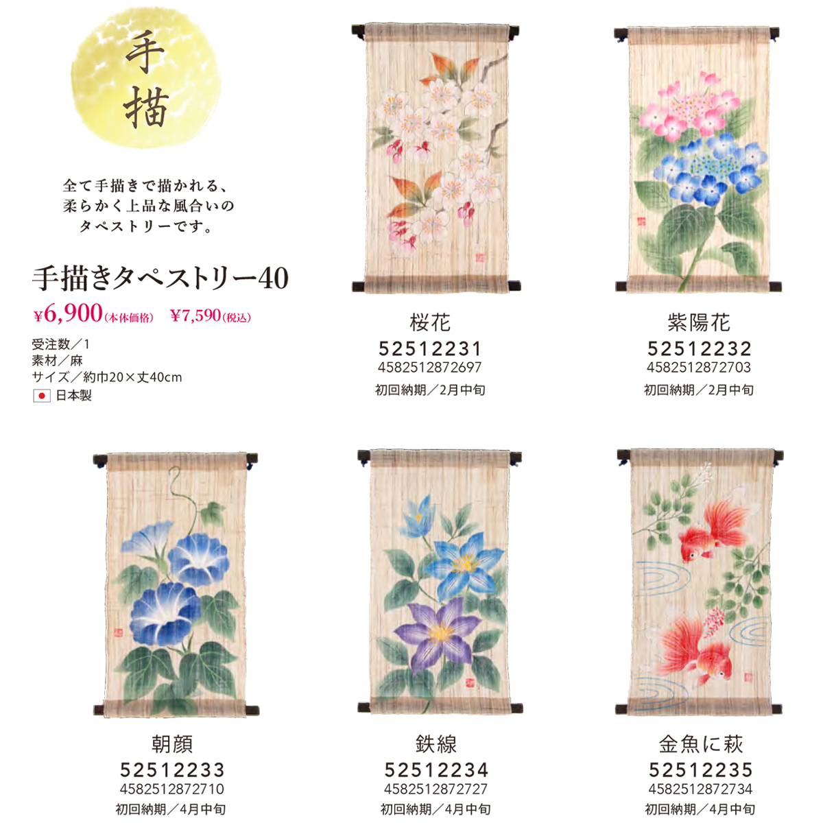 【5月上旬入荷予定】手描きタペストリー40 インテリア雑貨 壁掛け 和雑貨 日本製 日本のお土産