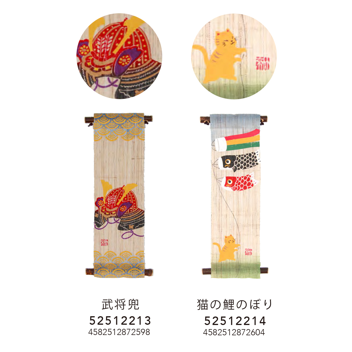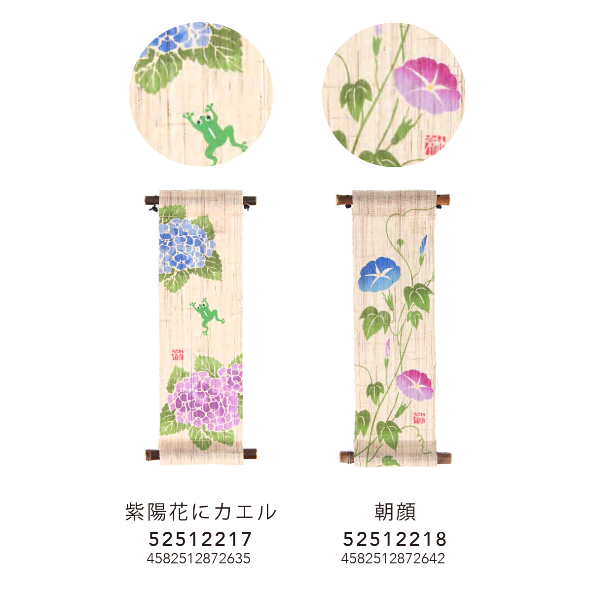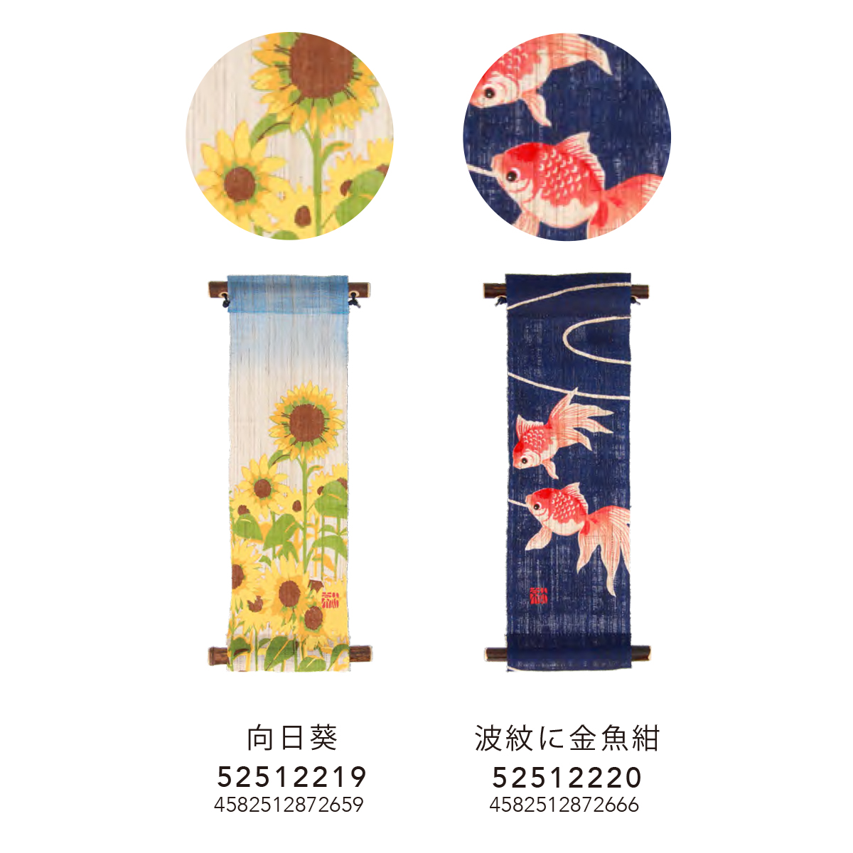 季節の草花や動物をあしらった、細身で飾りやすい型染タペストリーです。