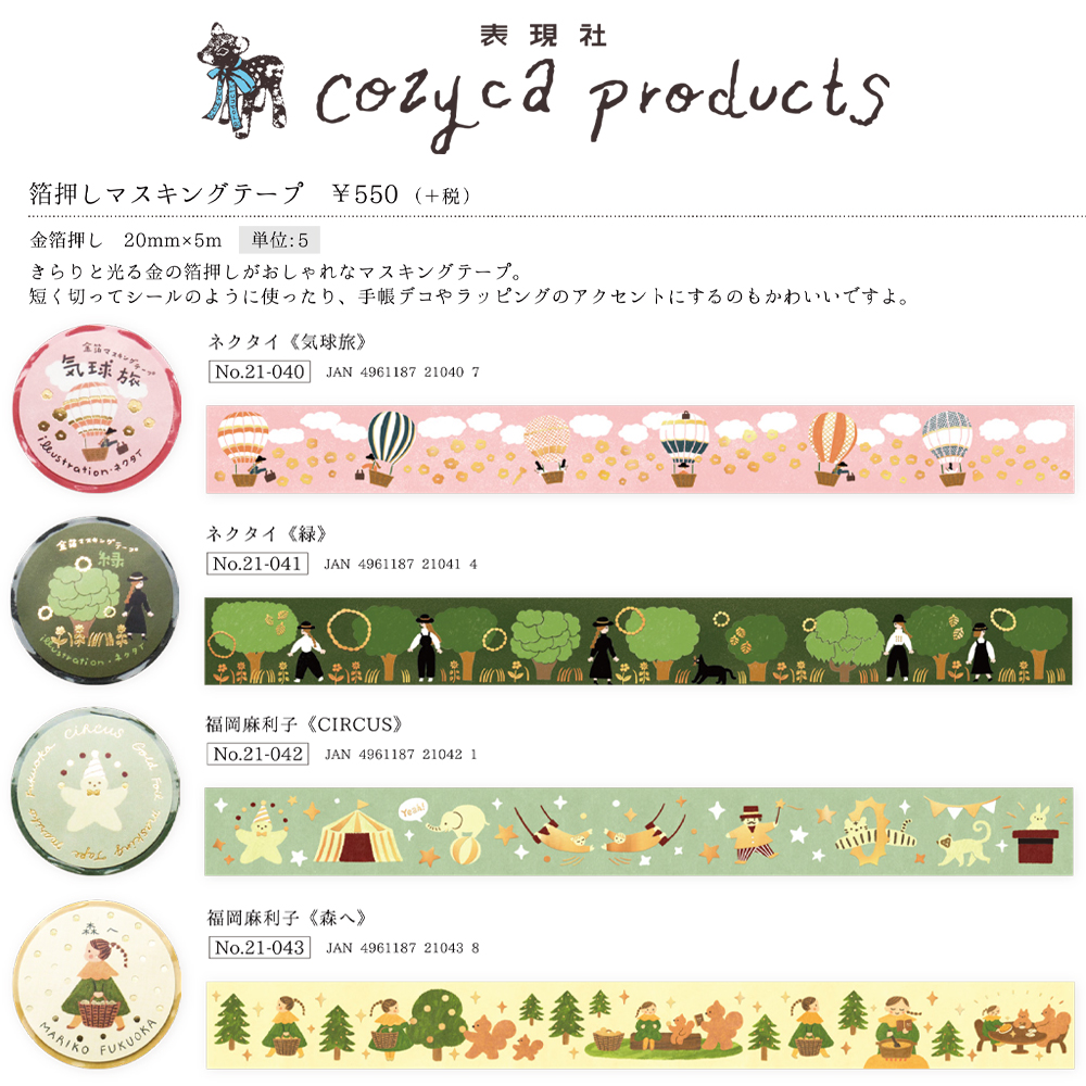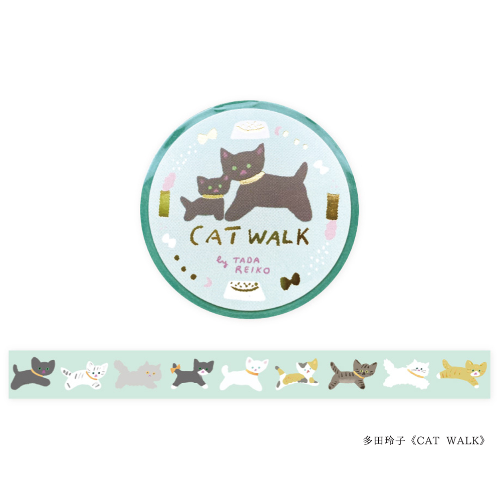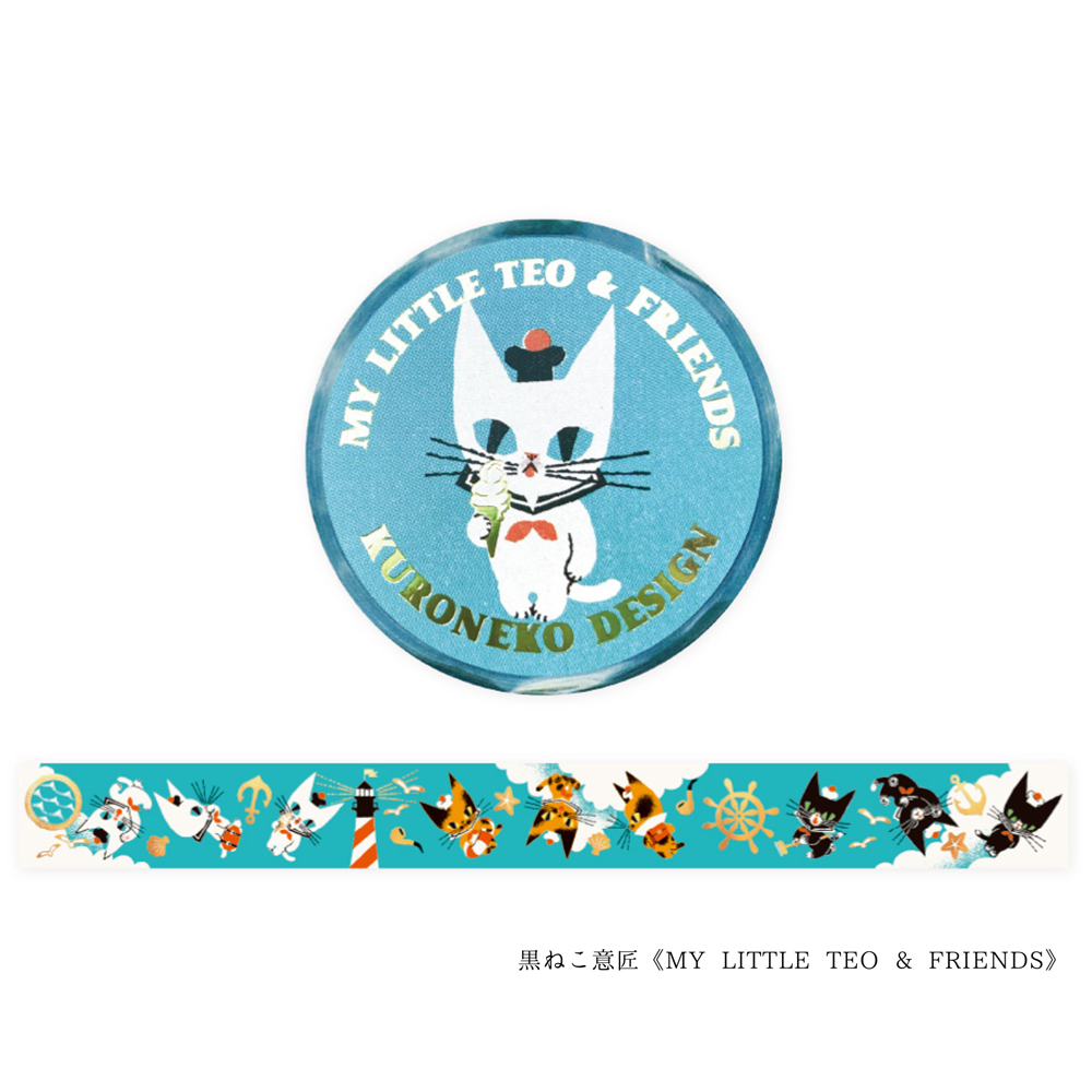 《予約:4月下旬発売》【cozyca products】箔押しマスキングテープ 黒ねこ意匠・北澤平祐・多田玲子・ネクタイ・福岡麻利子