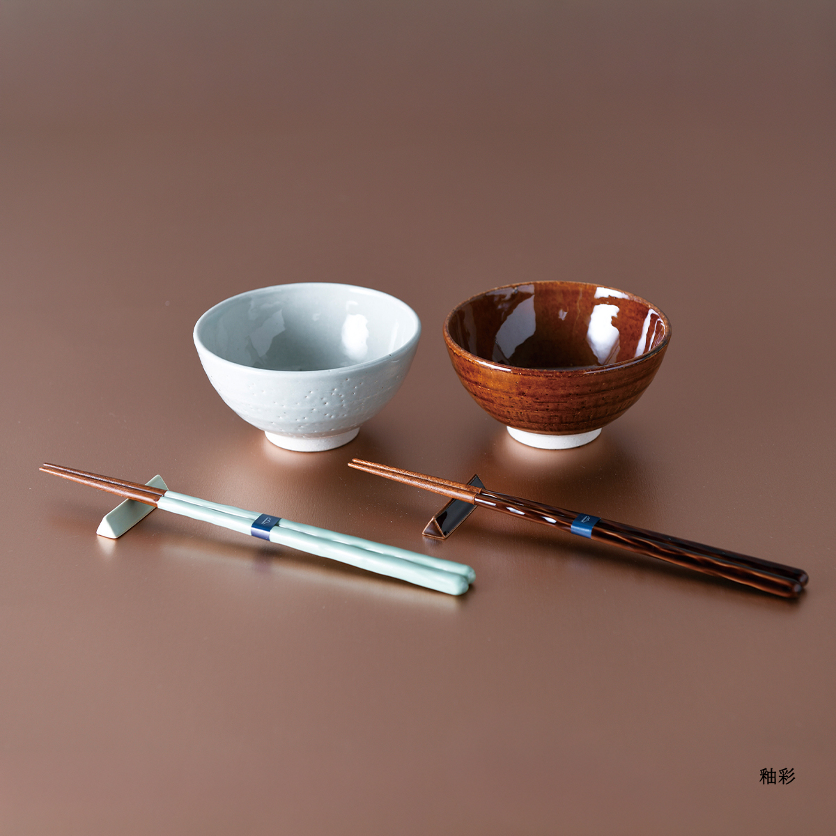 | 素材 | 箸(天然木)、箸置(陶器)、茶碗(陶器)、箸(ポリエステルウレタン塗装) |