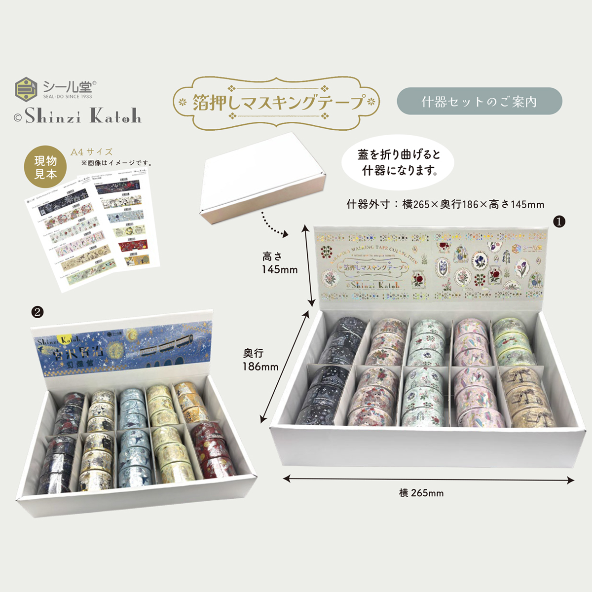| サイズ | 幅27mm×3m巻 <什器セット>什器外寸:横265×奥行186×高さ145mm(6種 30巻セット) |