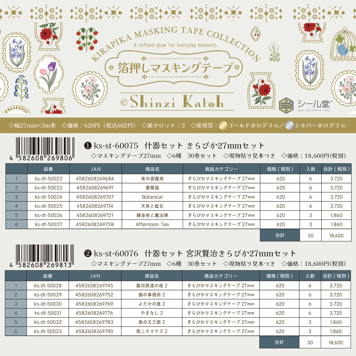 【Shinzi Katoh】箔押しマスキングテープ 宮沢賢治 きらぴかマスキングテープ27mm