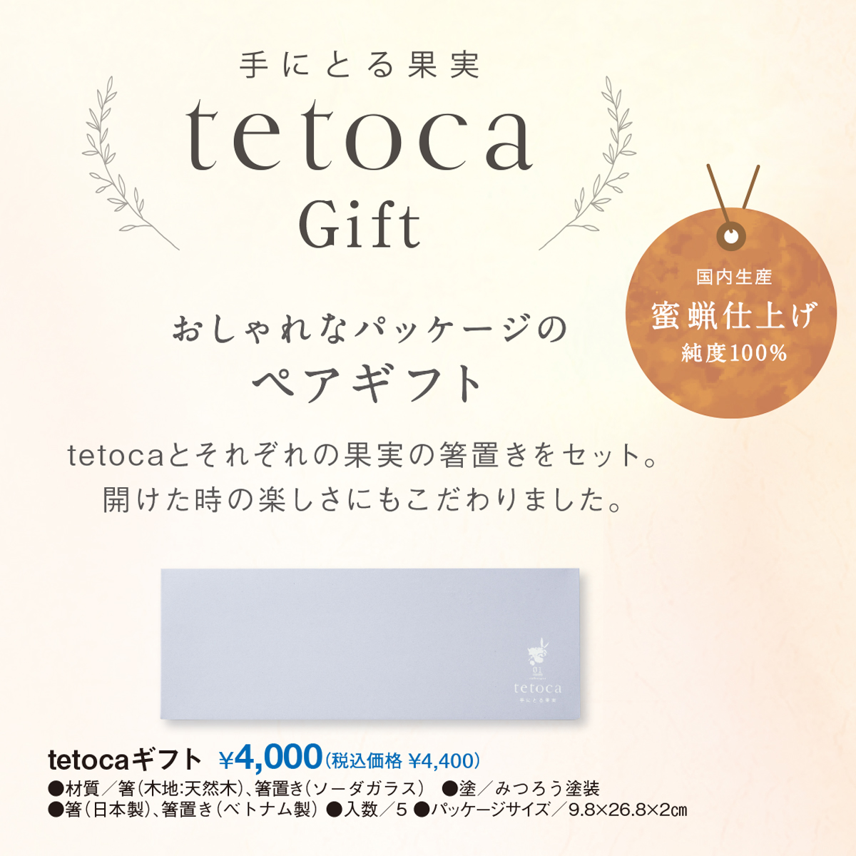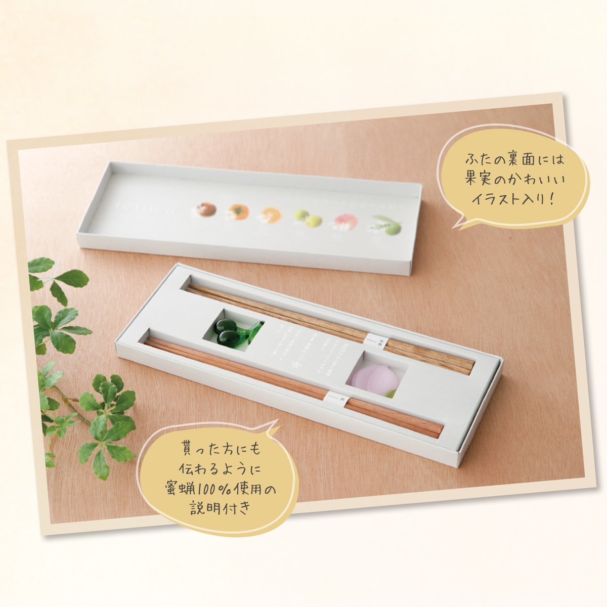 tetocaとそれぞれの果実の箸置きをセット。