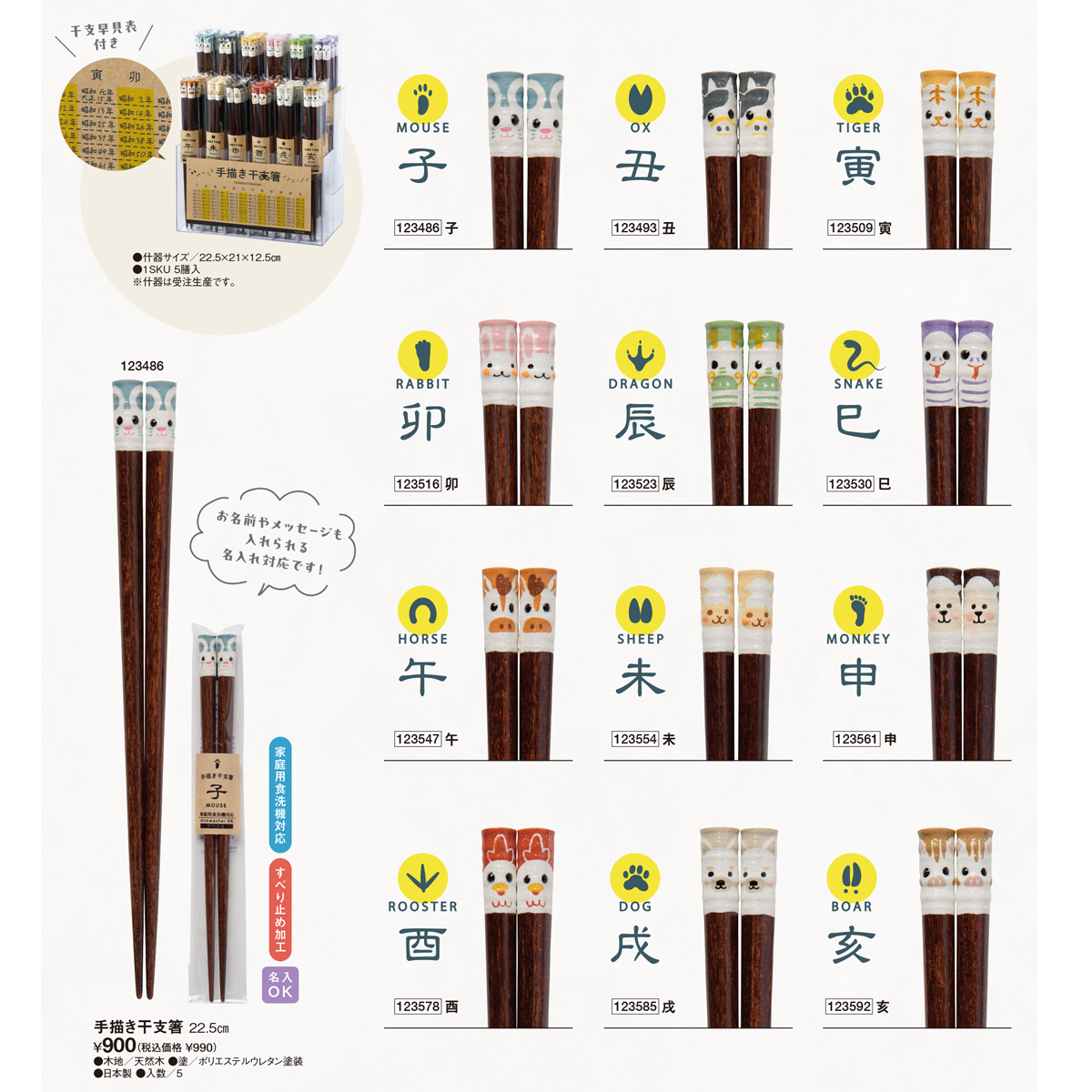 手描き干支箸 22.5cm ギフト プレゼント 名入れ可能