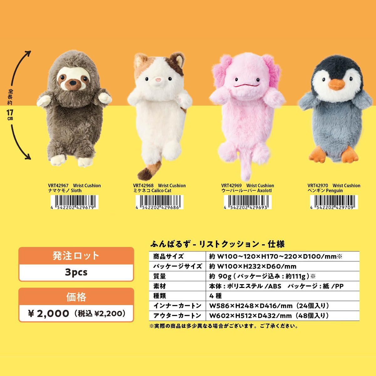 ふんばるず リストクッション ナマケモノ/ウーパールーパー/ペンギン/ミケネコ パソコン デスクワーク スマホスタンドにも