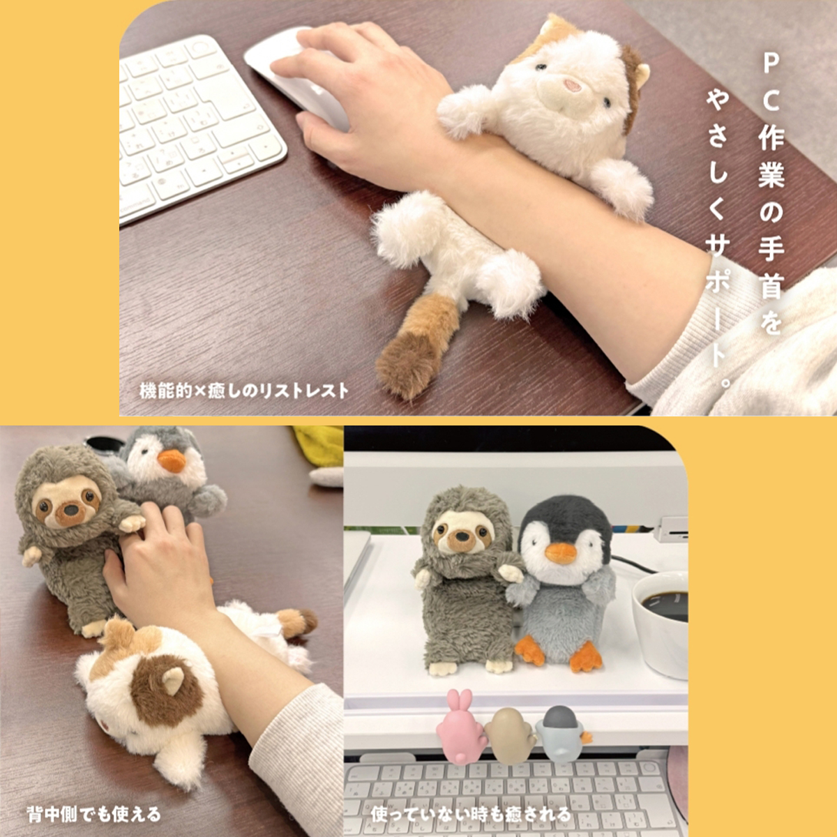 どうぶつたちがパソコン作業の手首をやさしくサポート。