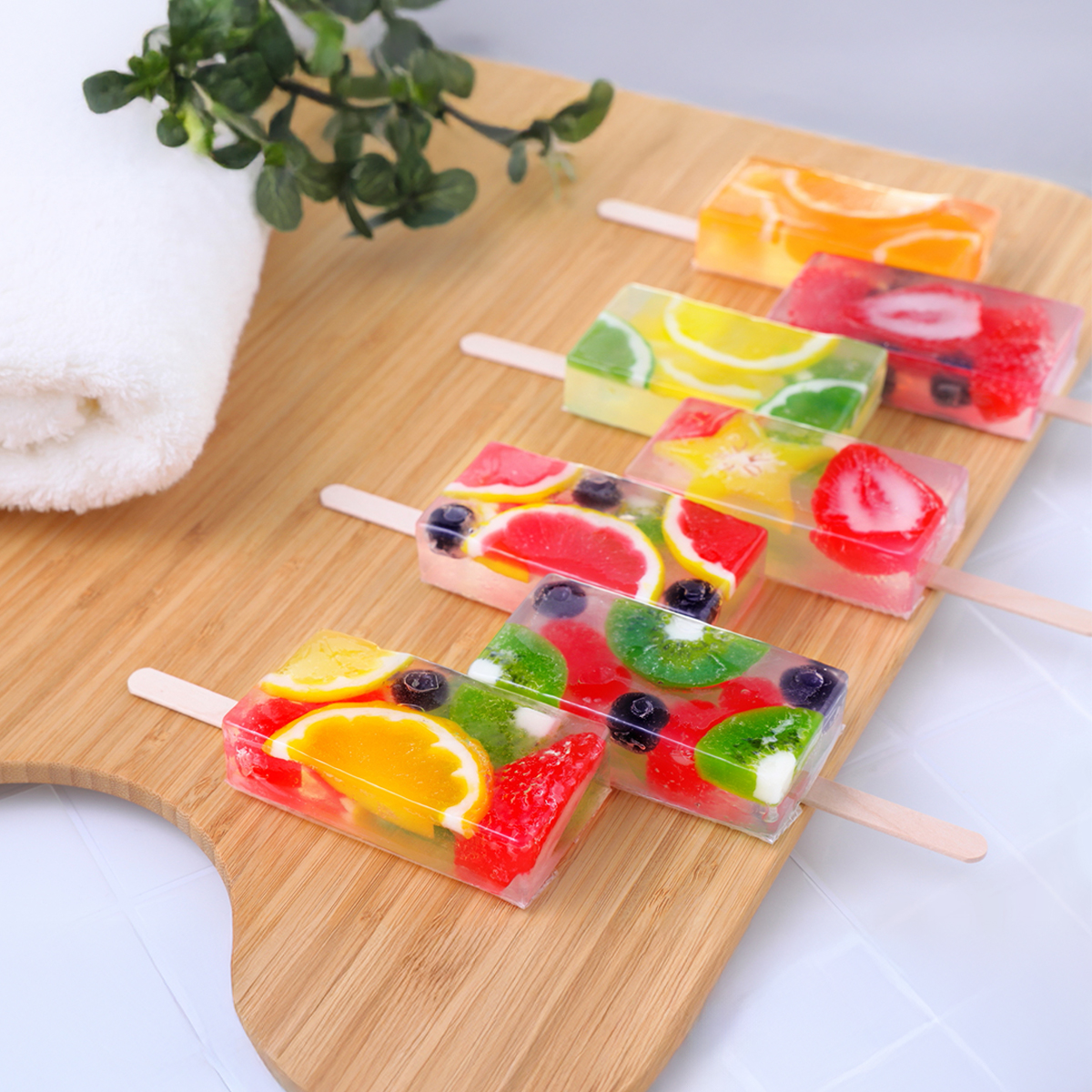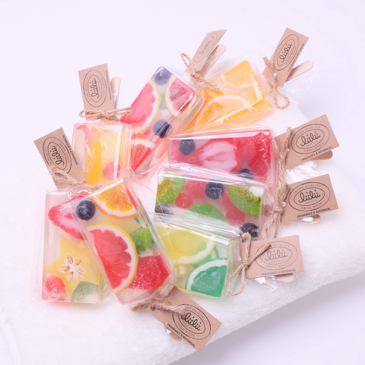 思わず食べてしまいたくなるようなフルーツは、全て石けんで作ってから、カットして入れるというこだわりの作りになっています。