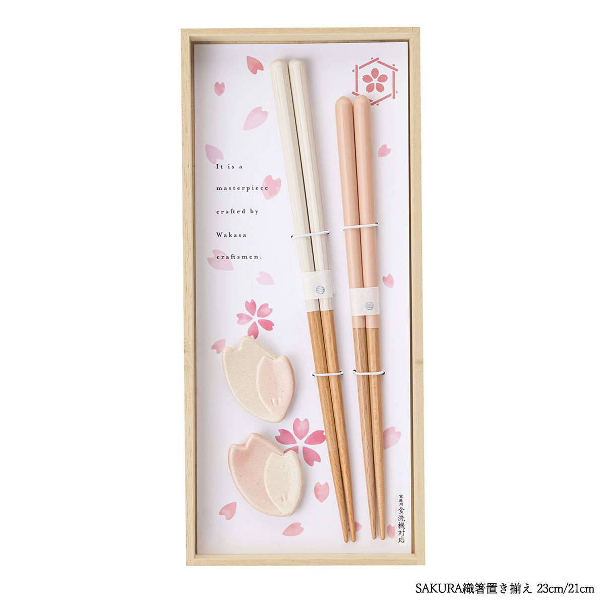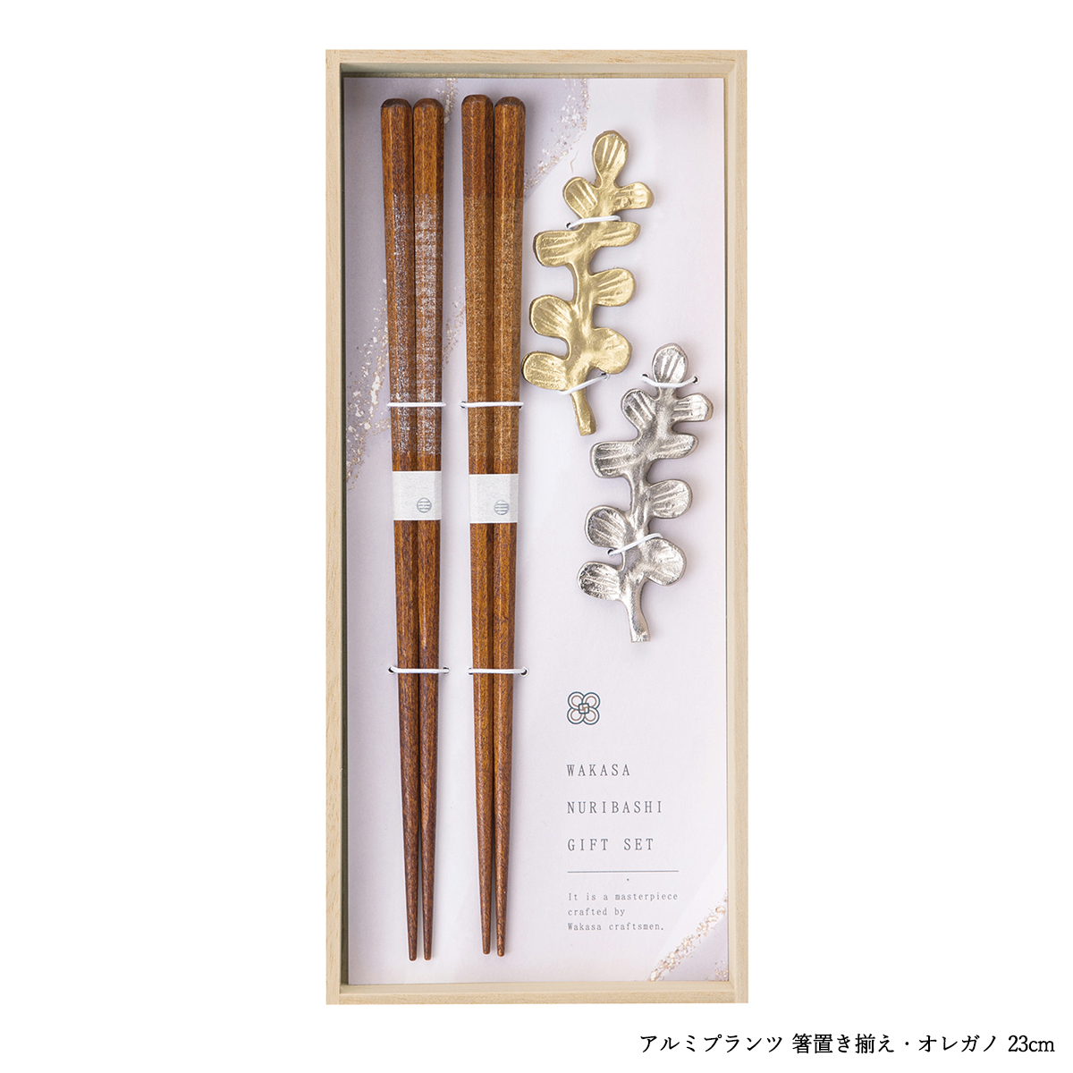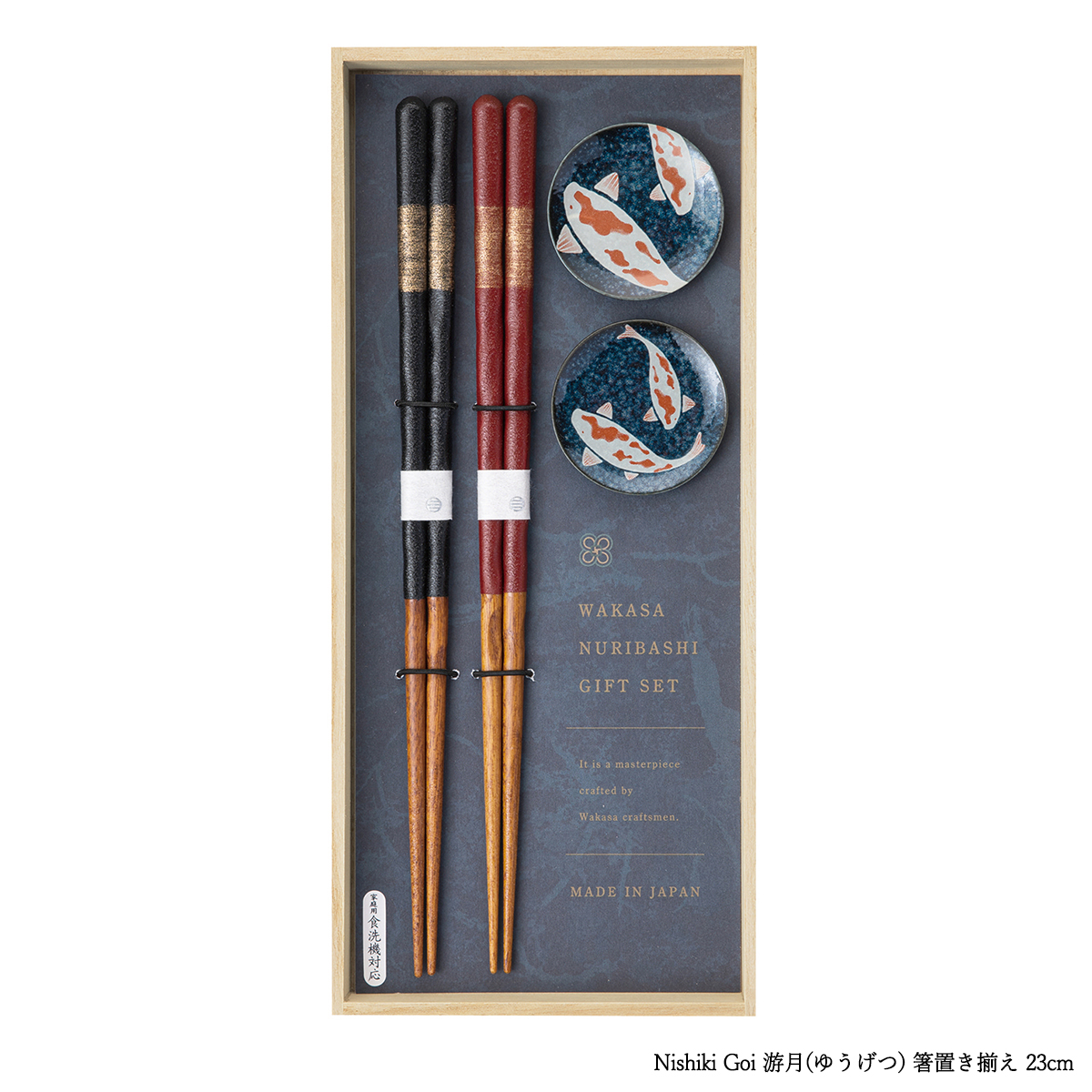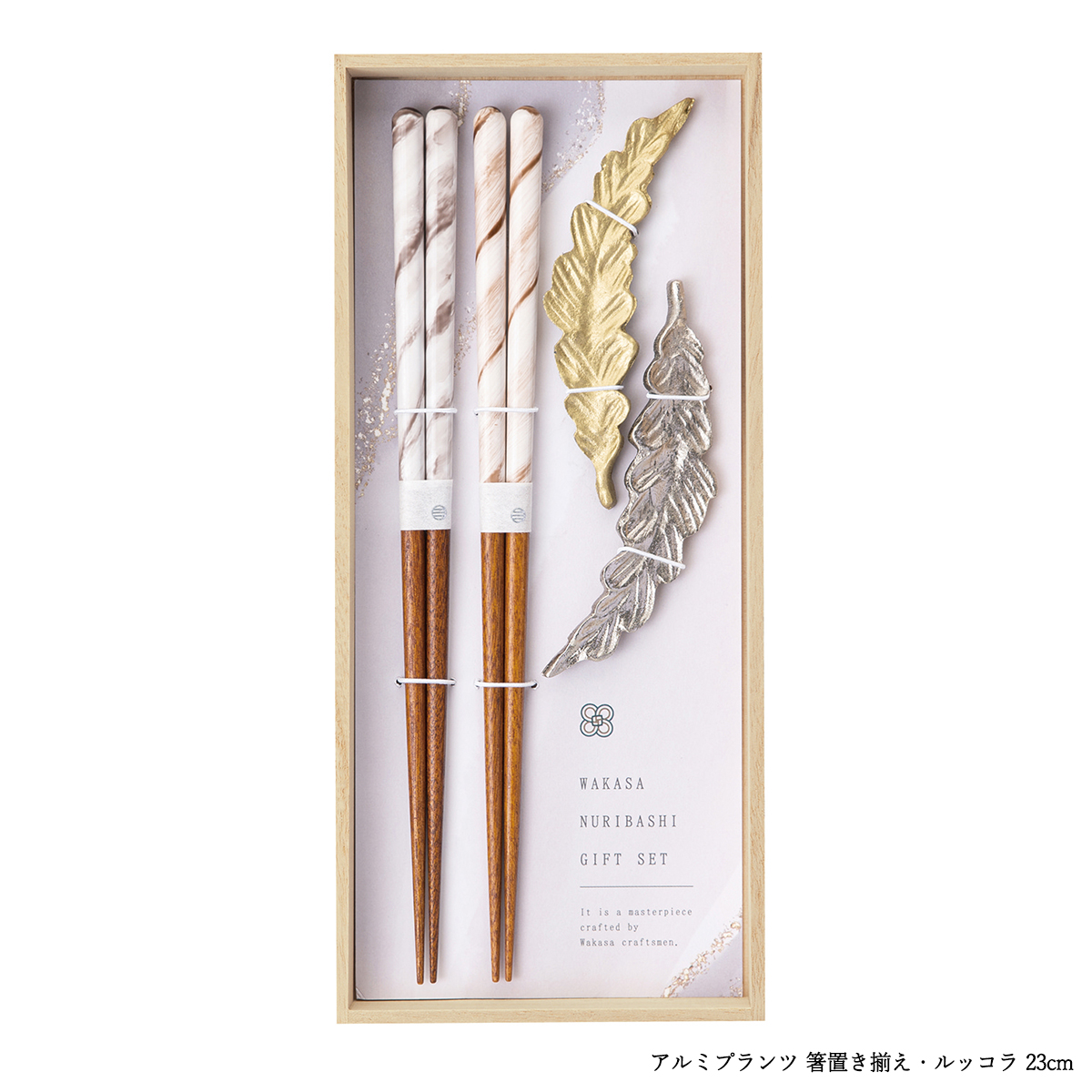 | 素材 | 【Nishiki Goi 游月(ゆうげつ)、寧々(ねね)、おこめ、SAKURA織】 箸(木地:天然木)、箸置き(磁器/陶器)、箸(ポリエステルウレタン塗装) 【アルミプランツ】 箸(木地:天然木)、箸置き(アルミ)、箸(持手部/アクリル塗装 箸先/漆塗装) |