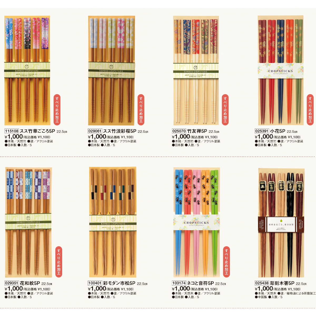 | 素材 | 【華ごころ、淡彩桜、竹友禅、小花、花和紋、彩モダン市松、白竹レインボー】 天然竹、アクリル塗装 【ネコと音符】 天然木、アクリル塗装 【彫刻木箸、天然木五柄】 天然木、植物油による研磨加工 【コパン】 天然竹、ポリエステルウレタン塗装 【フレスタ、プランタン】 天然木、ポリエステルウレタン塗装 |