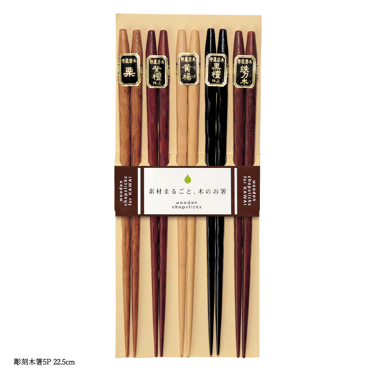 | 生産地 | 日本/【彫刻木箸】中国【天然木五柄】海外製(箸帯横に表記) |