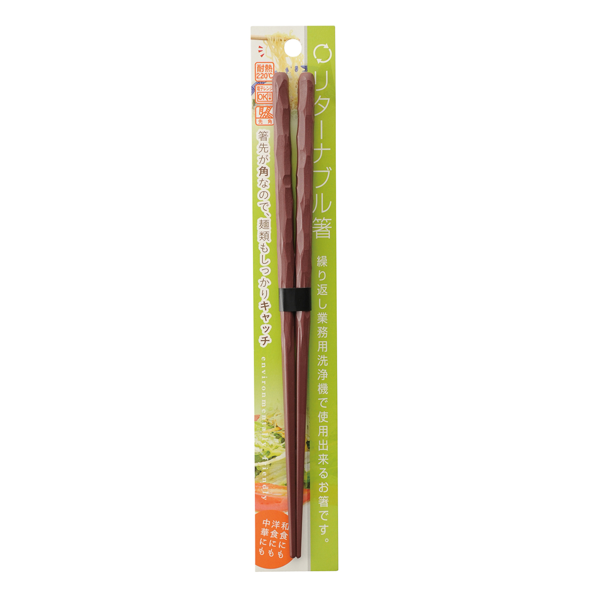 一度使ったら捨ててしまう割箸は、使用後はそのままゴミになってしまいます。ゴミを削減することは環境問題への取り組みの第一歩。耐久性に優れたリターナブル箸ならお店などでも繰り返し使えてとてもエコ。先角加工で掴みやすい高性能なお箸です。
