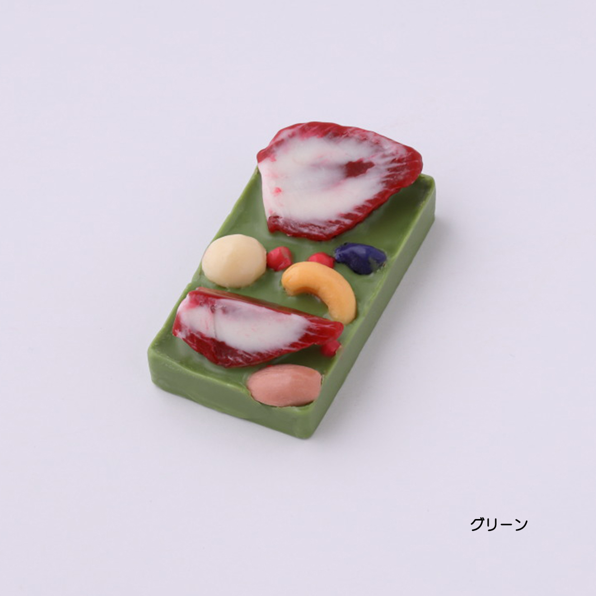 くすみカラーのドライフルーツと木の実をちりばめたタブレットチョコレートのような石けん。