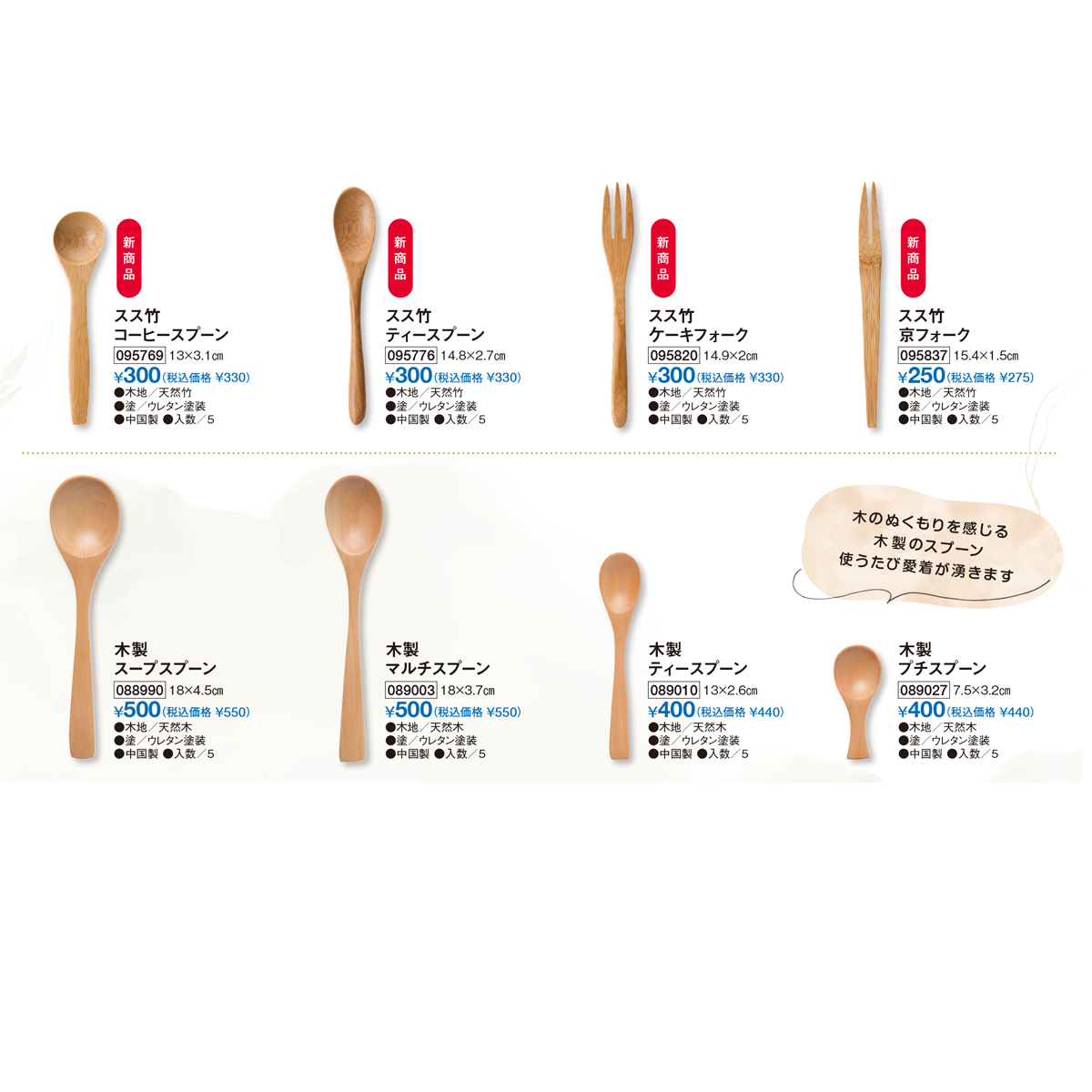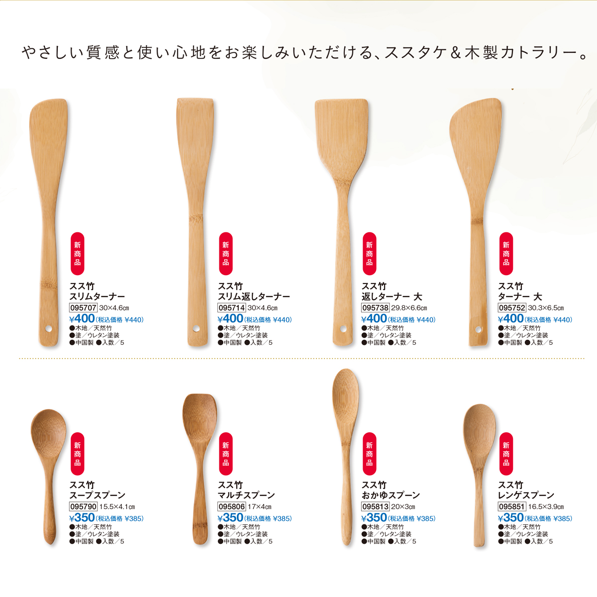 やさしい質感と使い心地をお楽しみいただける、ススタケ&木製カトラリー。