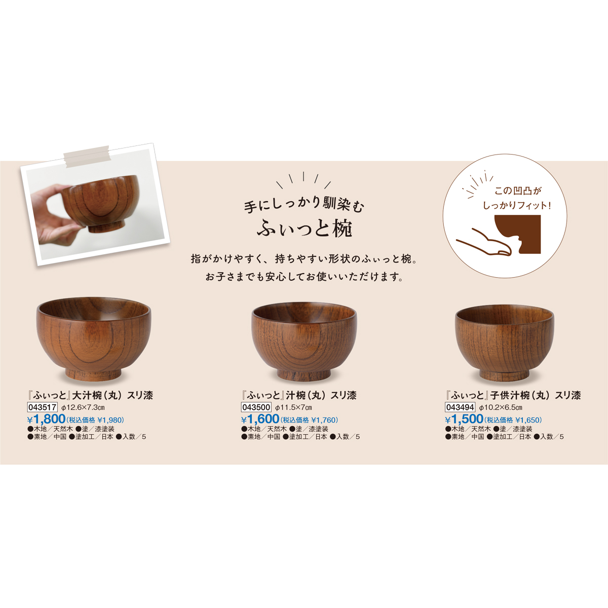 指がかけやすく、持ちやすい形状のふいっと椀。お子さまでも安心してお使いいただけます。